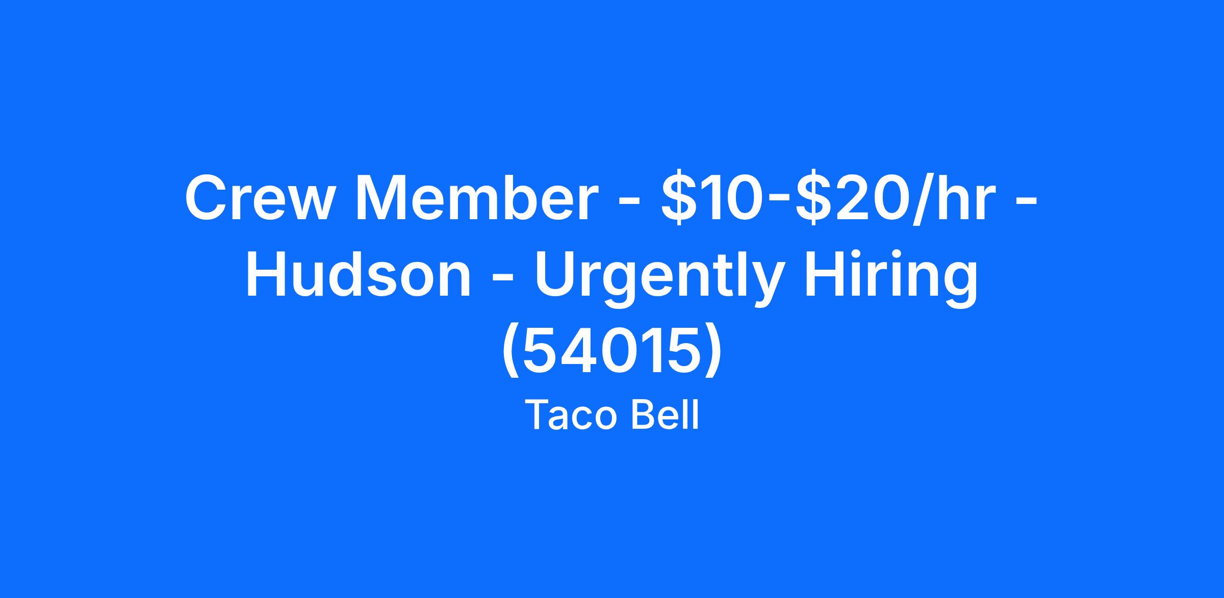 Taco Bell - Hudson is looking for a full time or part time crew member to join our team in Hudson, WI. As a Taco Bell - Hudson crew member, you can be the smiling face that greets and serves our guests or a cook who makes things happen in the kitchen. Working with us will give you the flexibility to be whatever our team and guests needs you to be. You'll learn new things, get recognized for your efforts and learn skills that last a lifetime.