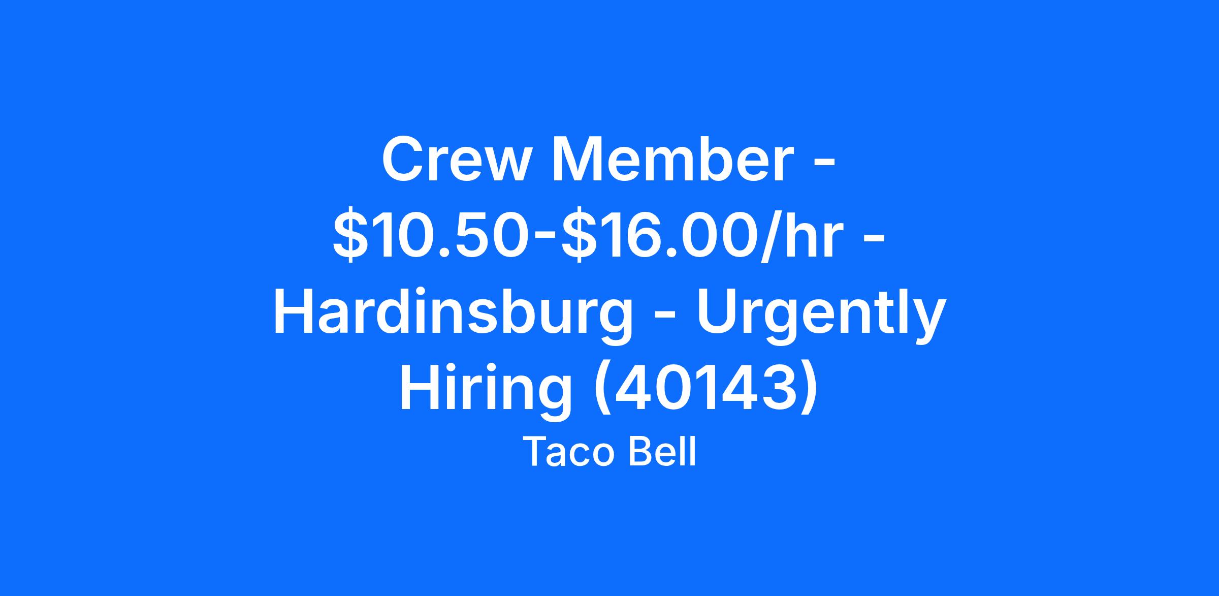 -Not only will you work with our crew members, you will be part of an overall team helping to support the success of Taco Bell - Hardinsburg, KY