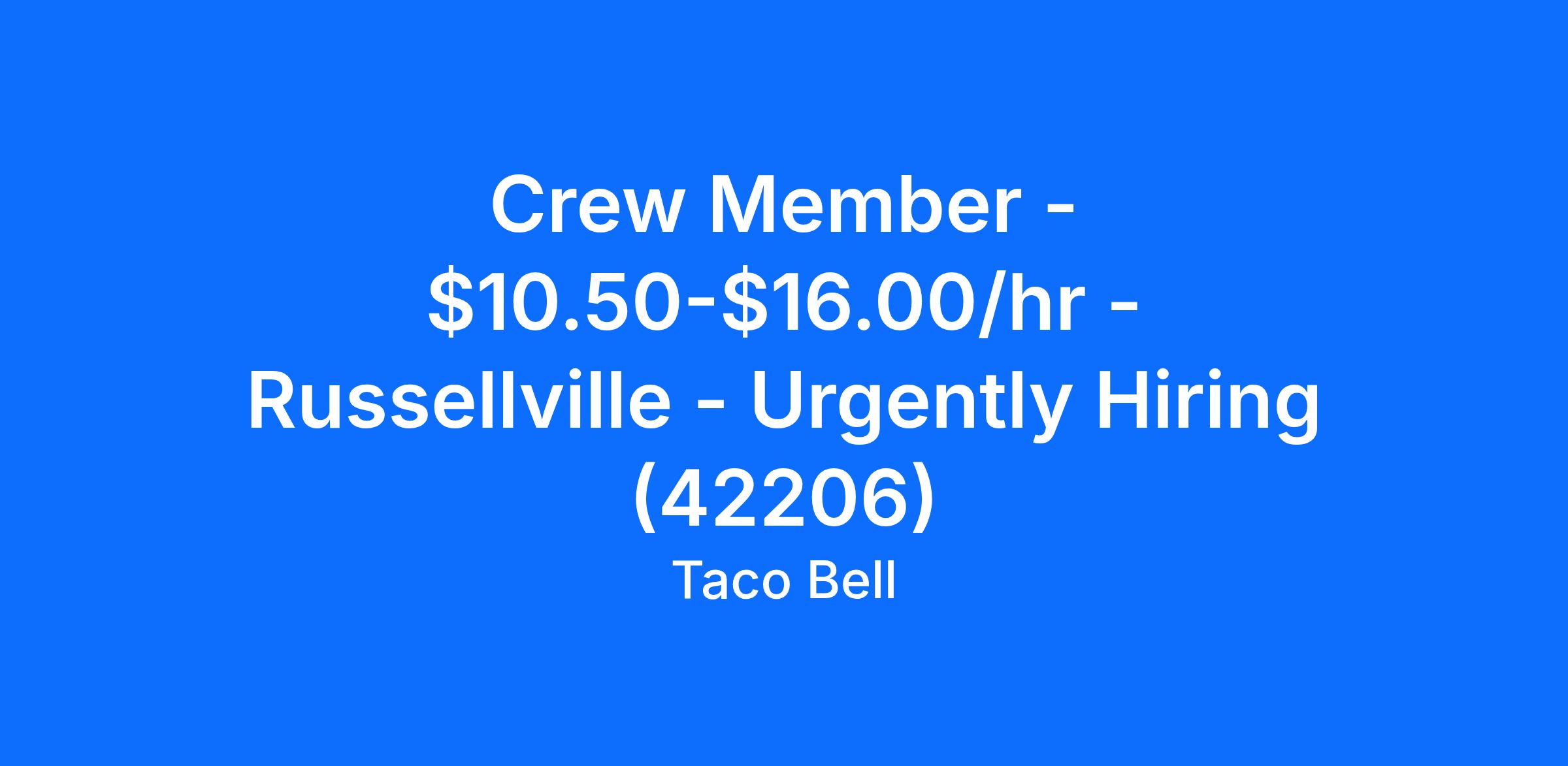 -Not only will you work with our crew members, you will be part of an overall team helping to support the success of Taco Bell - Russellville, KY