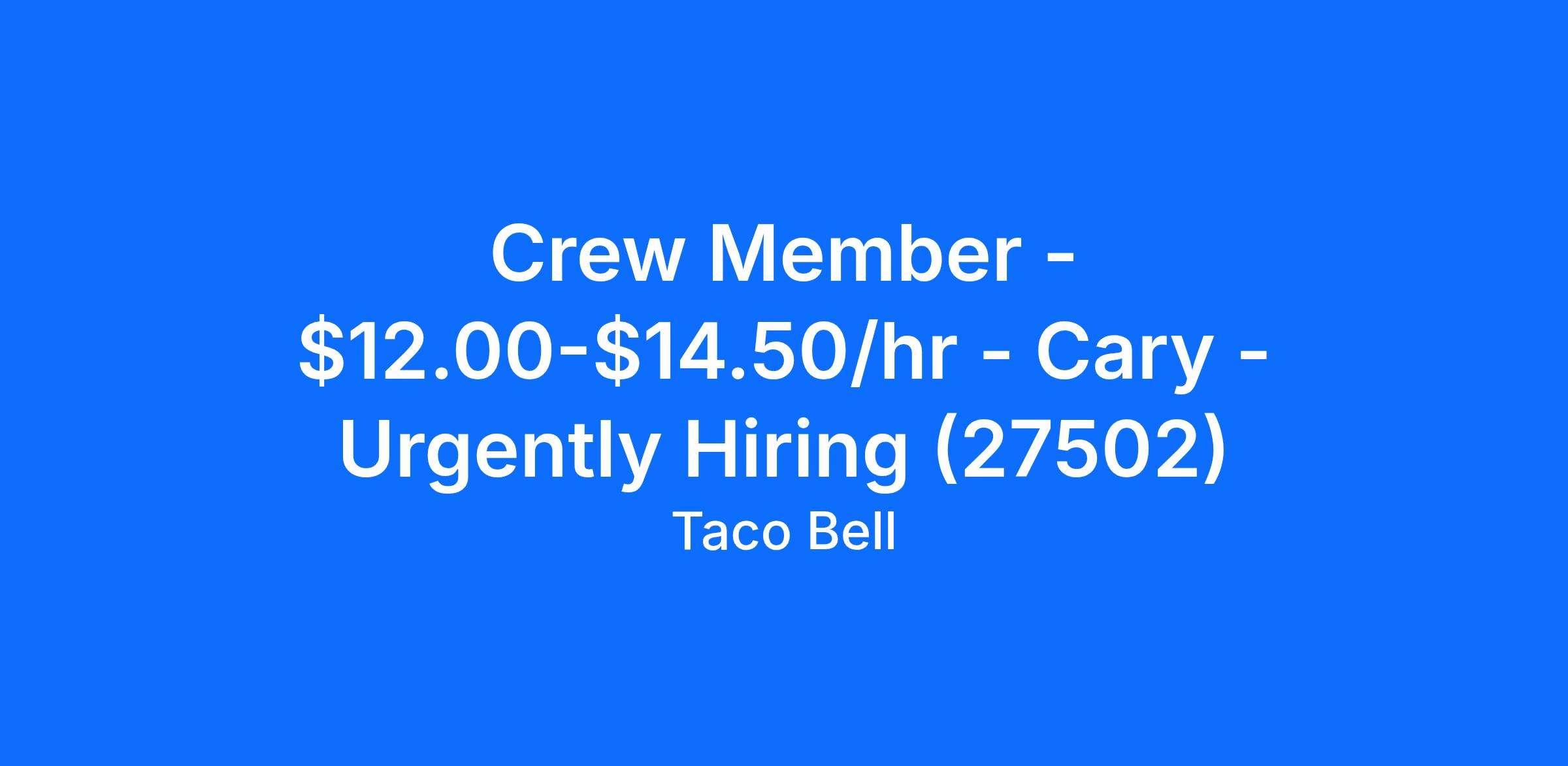 Crew Member - $12.00-$14.50/hr - Cary - Urgently Hiring (27502)