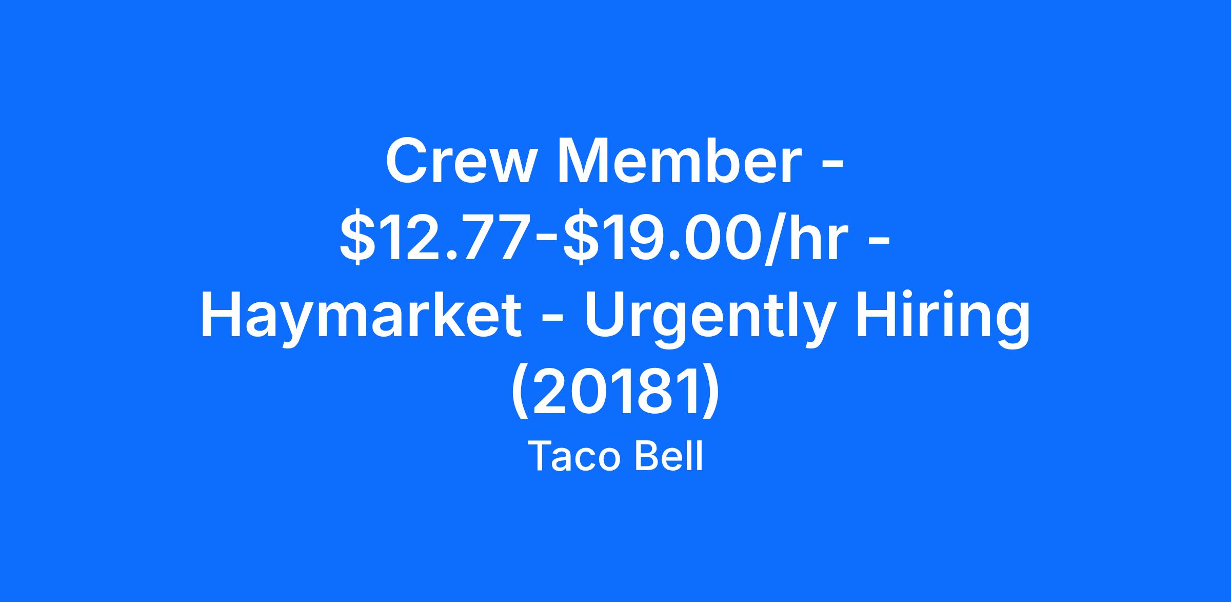 Crew Member - $12.77-$19.00/hr - Haymarket - Urgently Hiring (20181)