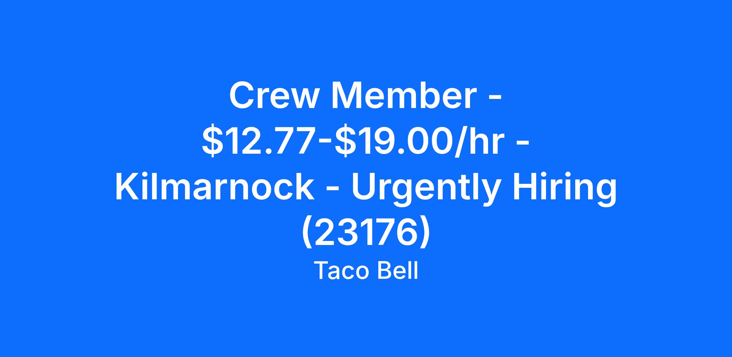 Taco Bell - Kilmarnock is looking for a full time or part time crew member to join our team in Kilmarnock, VA. As a Taco Bell - Kilmarnock crew member, you can be the smiling face that greets and serves our guests or a cook who makes things happen in the kitchen. Working with us will give you the flexibility to be whatever our team and guests needs you to be. You'll learn new things, get recognized for your efforts and learn skills that last a lifetime.