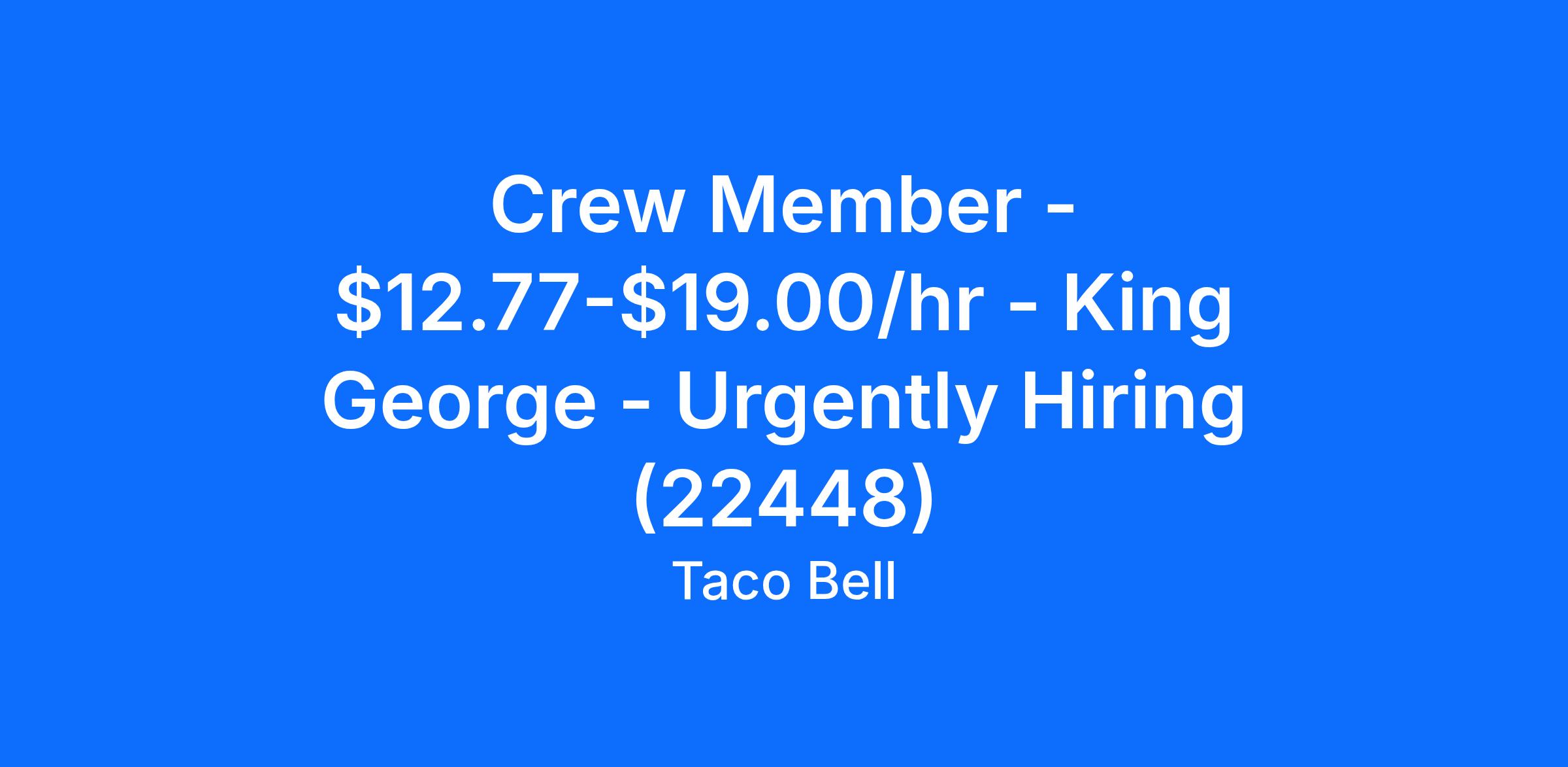 Crew Member - $12.77-$19.00/hr - King George - Urgently Hiring (22448)