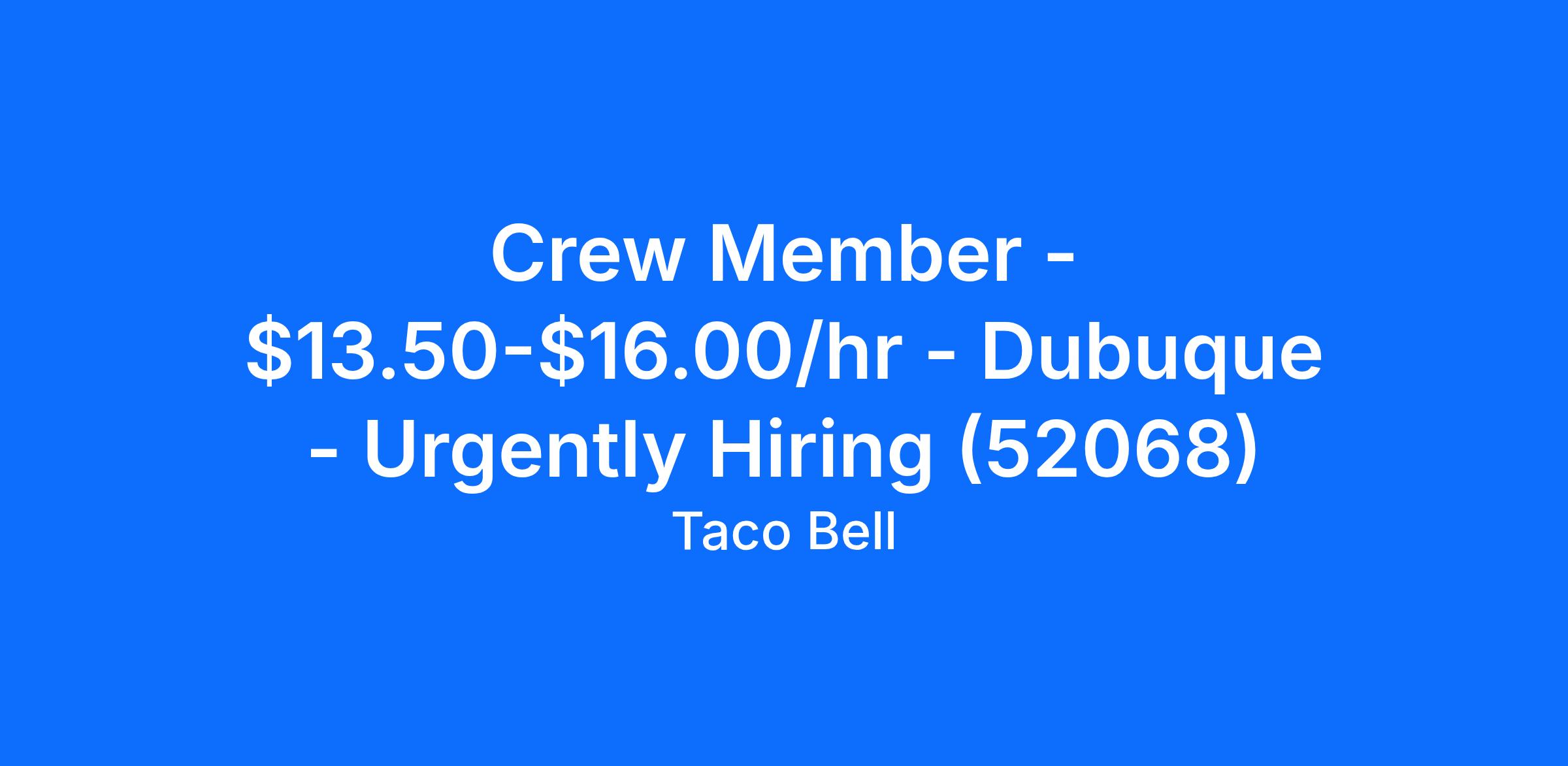 Crew Member - $13.50-$16.00/hr - Dubuque - Urgently Hiring (52068)