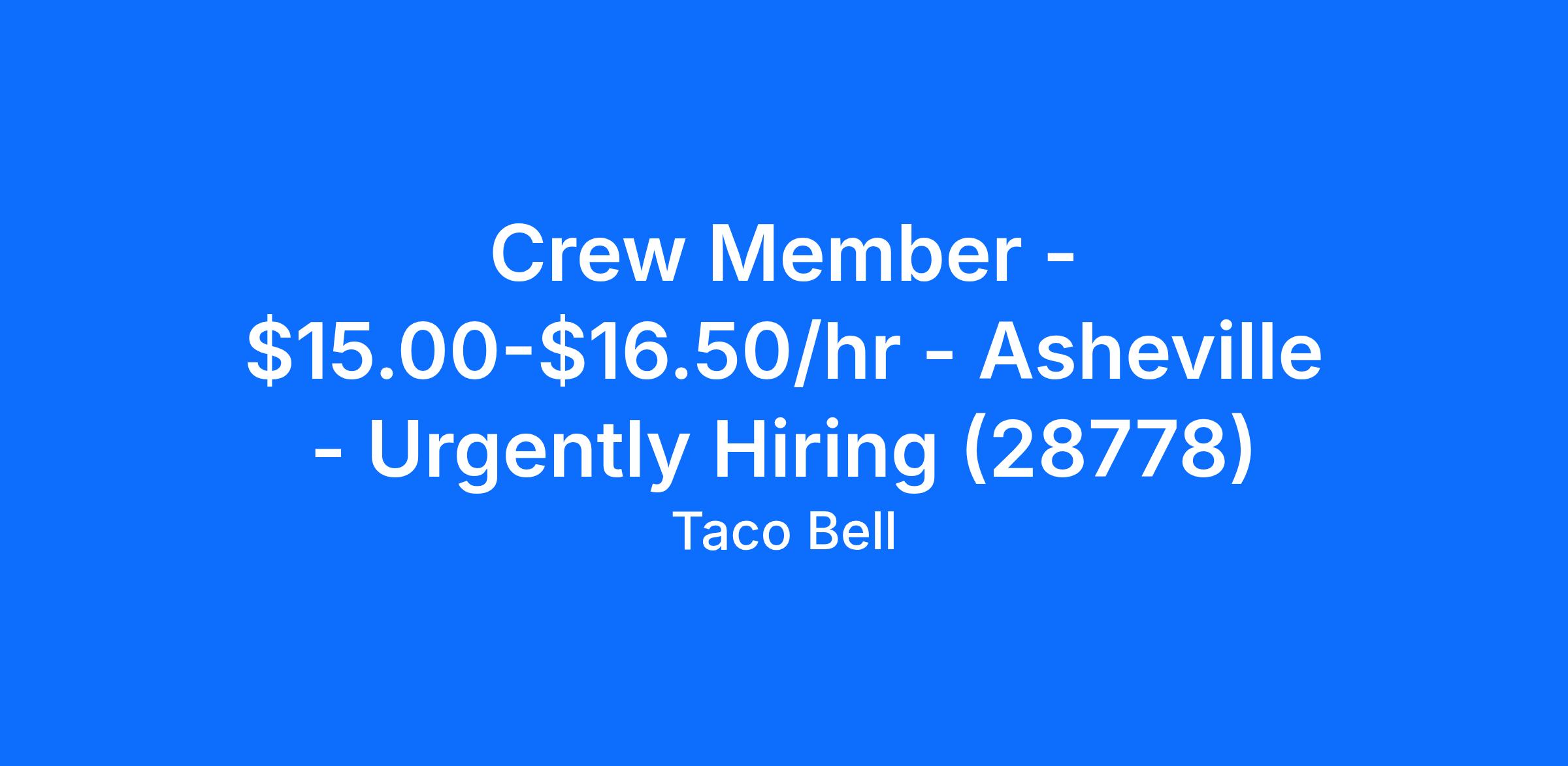 Taco Bell - Brevard Rd is looking for a full time or part time crew member to join our team in Asheville, NC. As a Taco Bell - Brevard Rd crew member, you can be the smiling face that greets and serves our guests or a cook who makes things happen in the kitchen. Working with us will give you the flexibility to be whatever our team and guests needs you to be. You'll learn new things, get recognized for your efforts and learn skills that last a lifetime.