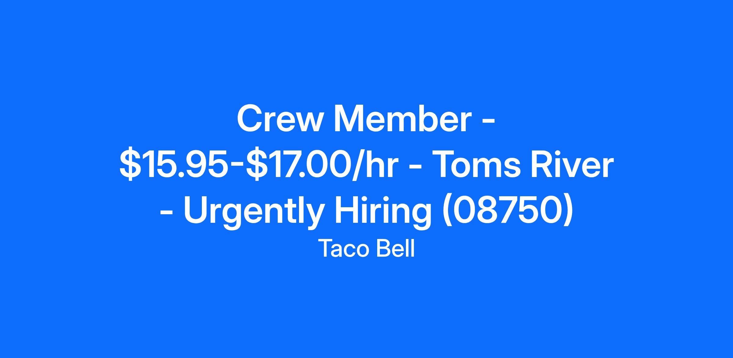 Taco Bell - Toms River East is looking for a full time or part time crew member to join our team in Toms River, NJ. As a Taco Bell - Toms River East crew member, you can be the smiling face that greets and serves our guests or a cook who makes things happen in the kitchen. Working with us will give you the flexibility to be whatever our team and guests needs you to be. You'll learn new things, get recognized for your efforts and learn skills that last a lifetime.