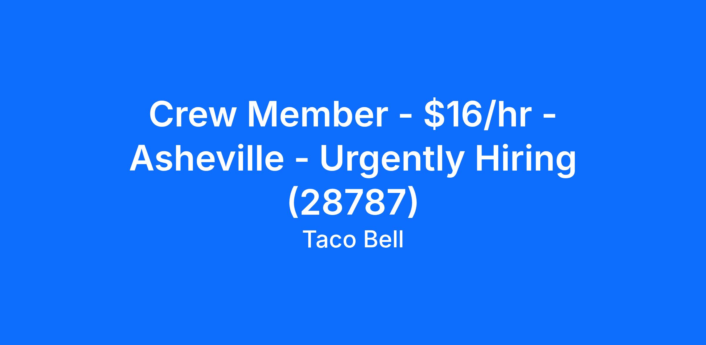 Taco Bell - Skyland/Hendersonville Rd is looking for a full time or part time crew member to join our team in Asheville, NC. As a Taco Bell - Skyland/Hendersonville Rd crew member, you can be the smiling face that greets and serves our guests or a cook who makes things happen in the kitchen. Working with us will give you the flexibility to be whatever our team and guests needs you to be. You'll learn new things, get recognized for your efforts and learn skills that last a lifetime.
