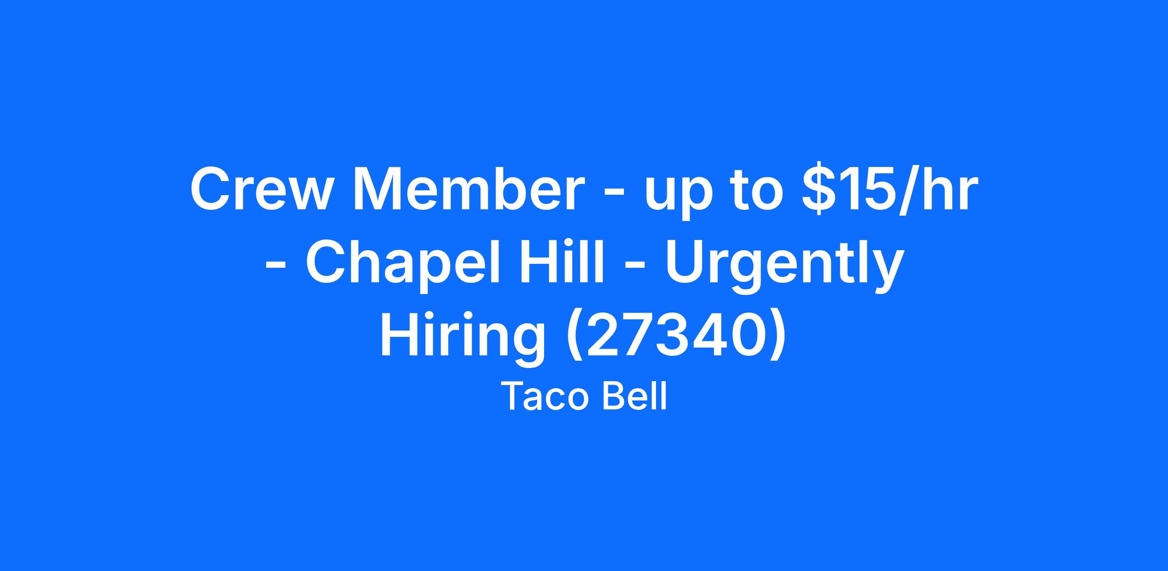 Taco Bell - Chapel Hill is looking for a full time or part time crew member to join our team in Chapel Hill, NC. As a Taco Bell - Chapel Hill crew member, you can be the smiling face that greets and serves our guests or a cook who makes things happen in the kitchen. Working with us will give you the flexibility to be whatever our team and guests needs you to be. You'll learn new things, get recognized for your efforts and learn skills that last a lifetime.