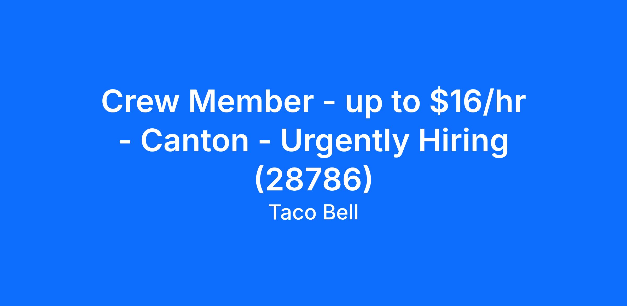 Taco Bell - Canton is looking for a full time or part time crew member to join our team in Canton, NC. As a Taco Bell - Canton crew member, you can be the smiling face that greets and serves our guests or a cook who makes things happen in the kitchen. Working with us will give you the flexibility to be whatever our team and guests needs you to be. You'll learn new things, get recognized for your efforts and learn skills that last a lifetime.