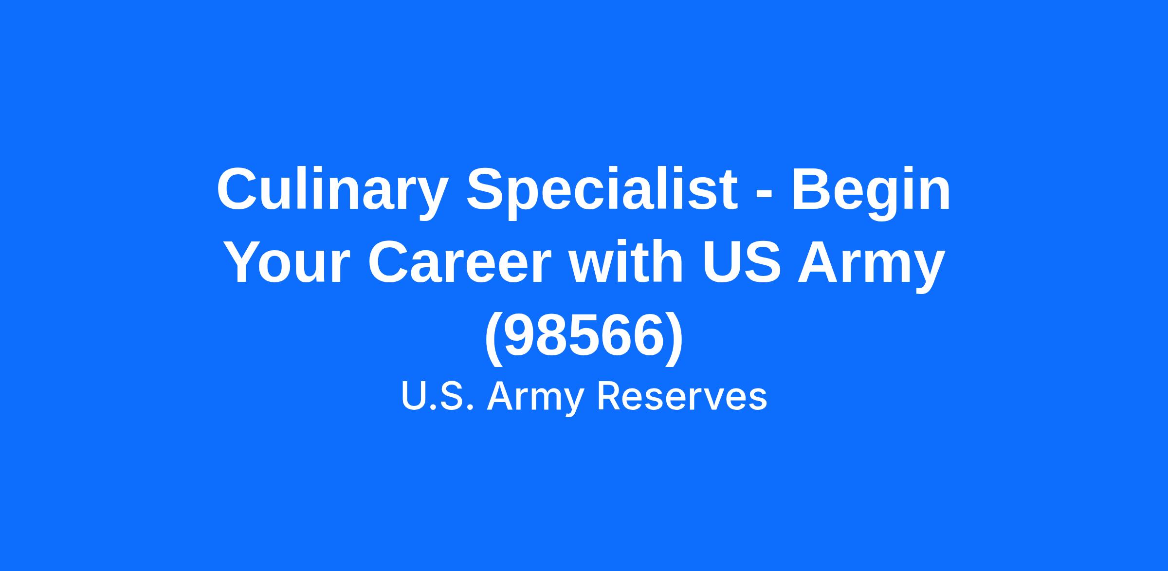 Culinary Specialist - Begin Your Career with US Army (98566)
