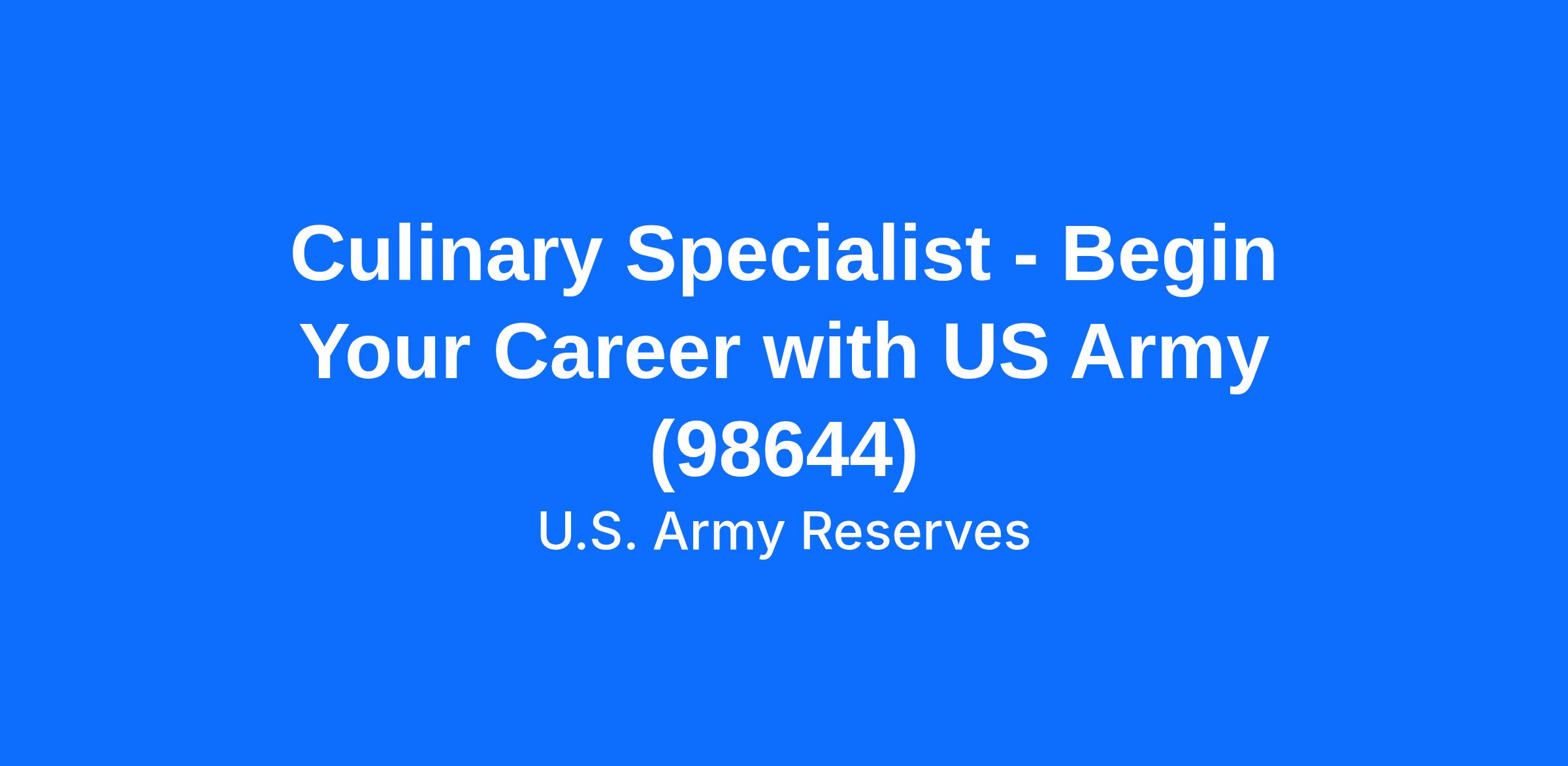 Culinary Specialist - Begin Your Career with US Army (98644)