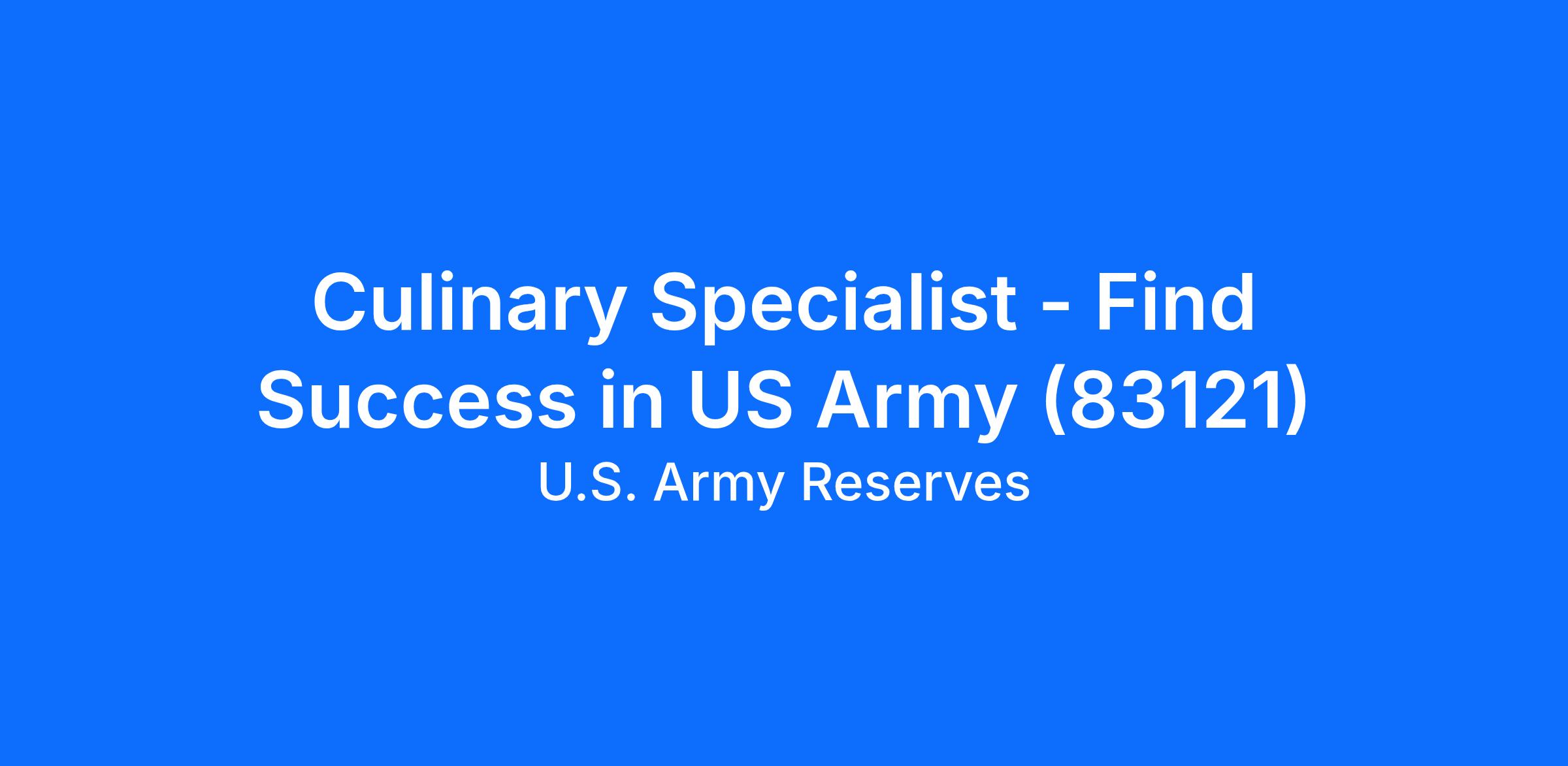 Culinary Specialist - Find Success in US Army (83121)