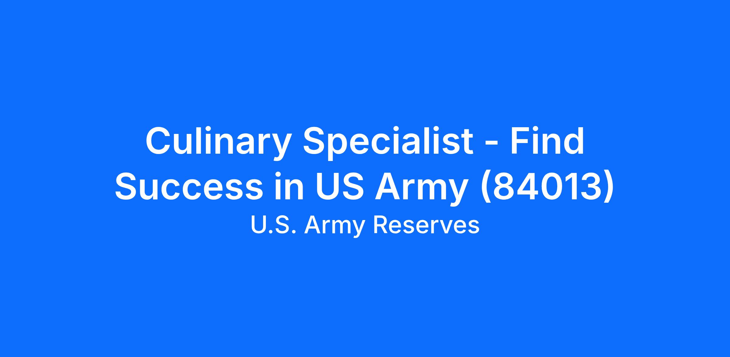 Culinary Specialist - Find Success in US Army (84013)