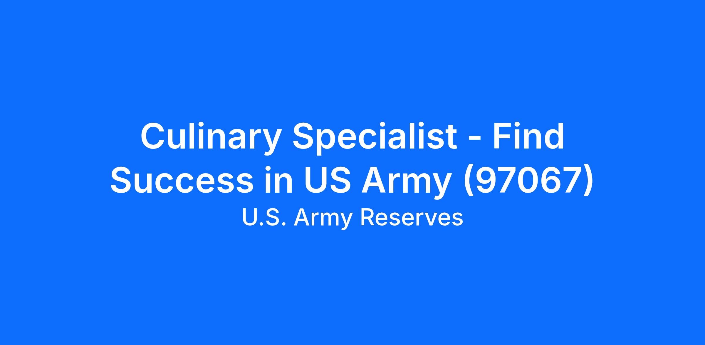 Culinary Specialist - Find Success in US Army (97067)