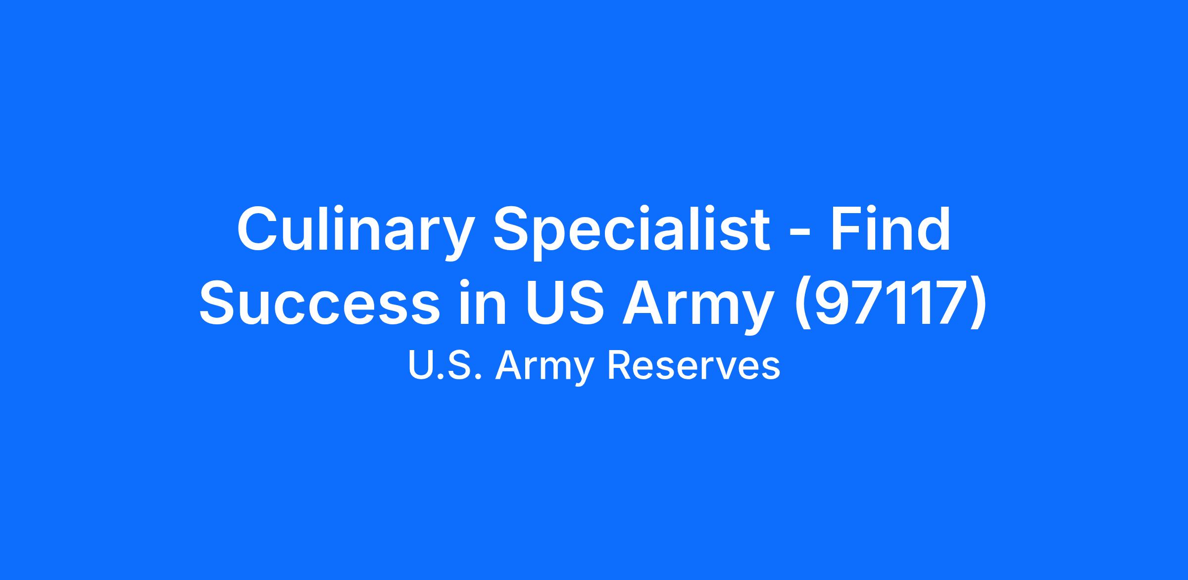 Culinary Specialist - Find Success in US Army (97117)