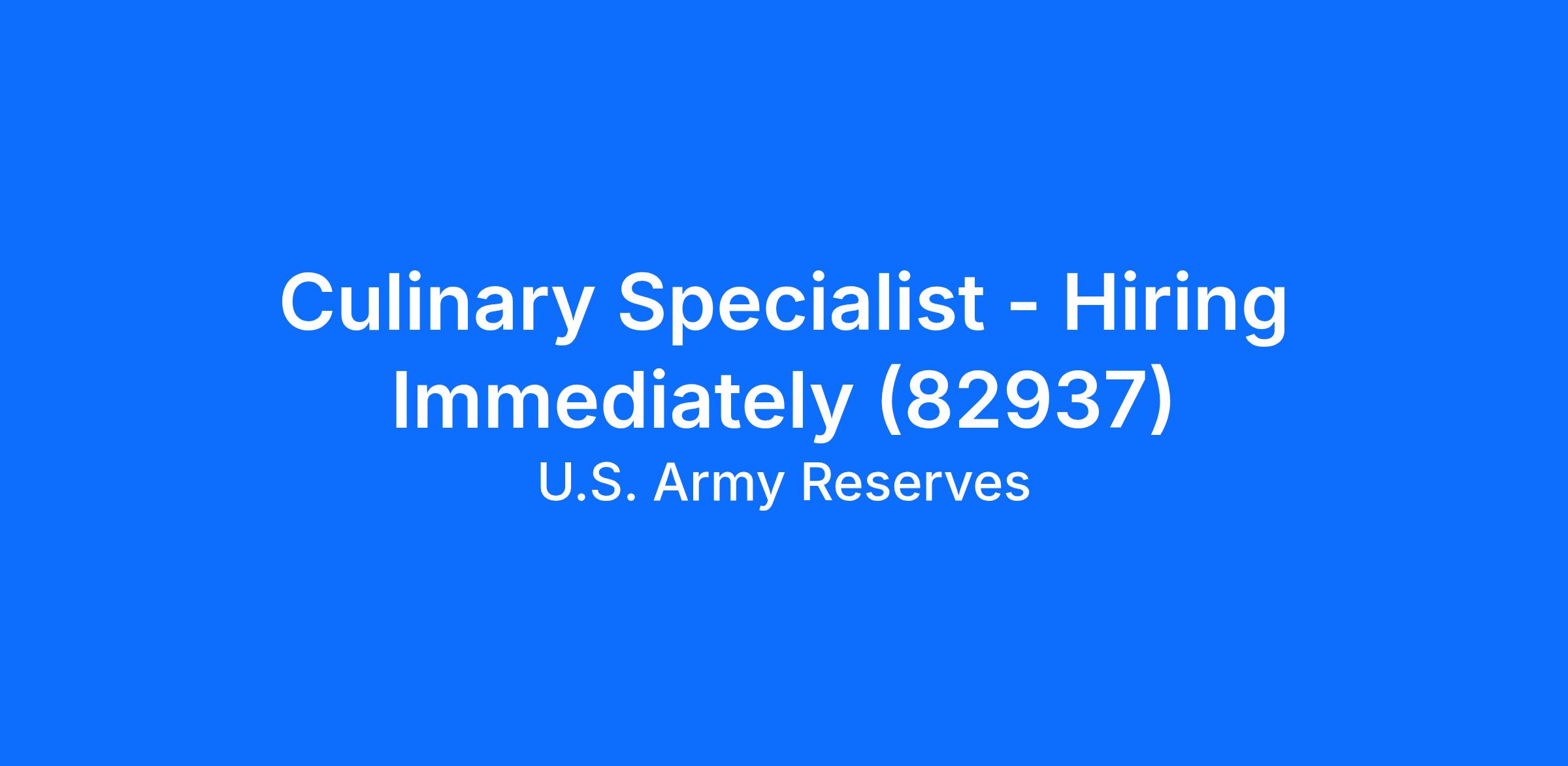 Culinary Specialist - Hiring Immediately (82937)