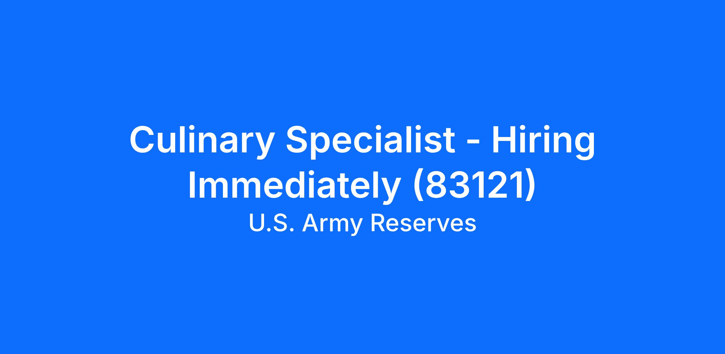 Culinary Specialist - Hiring Immediately (83121)