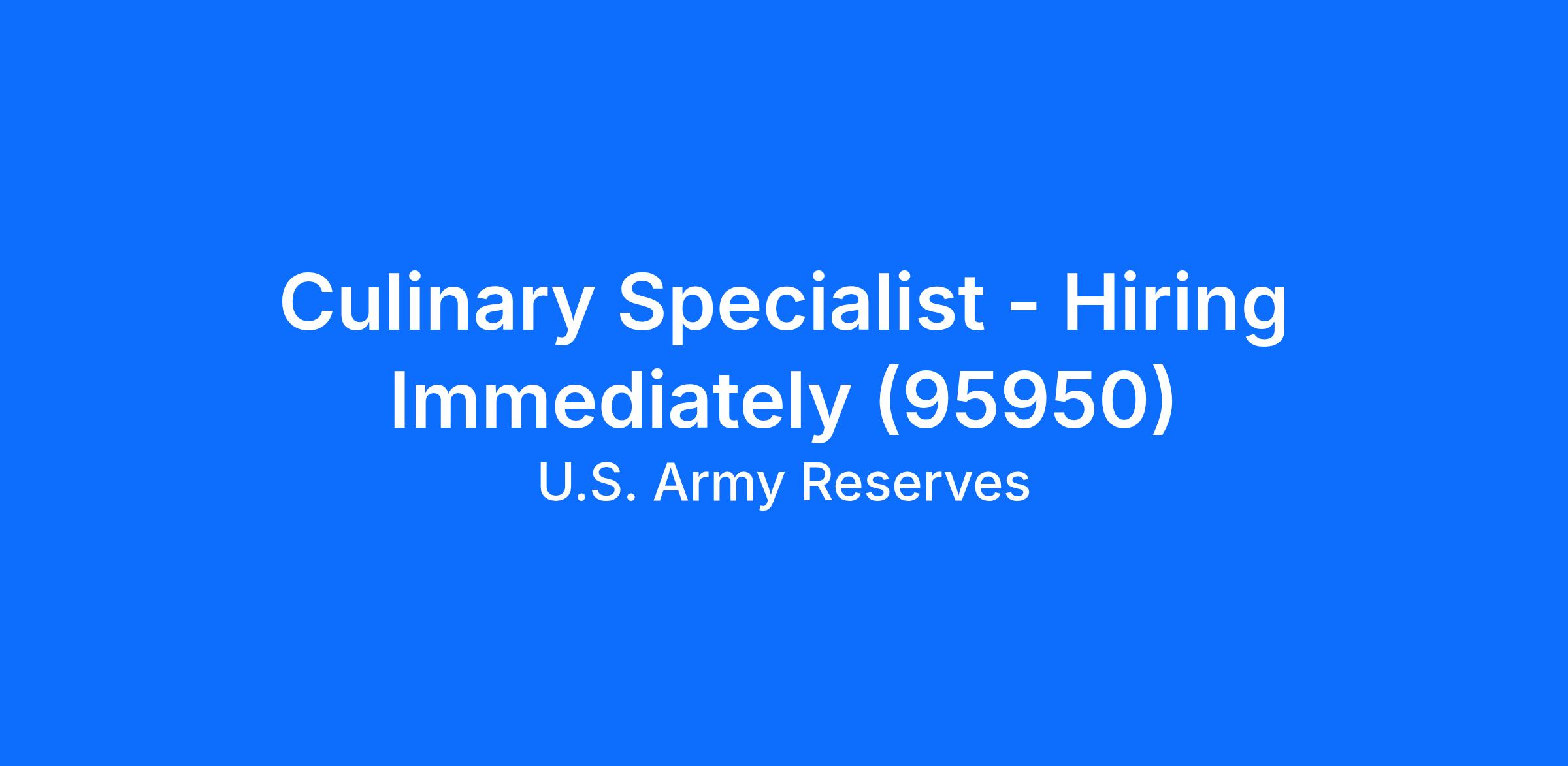 Culinary Specialist - Hiring Immediately (95950)