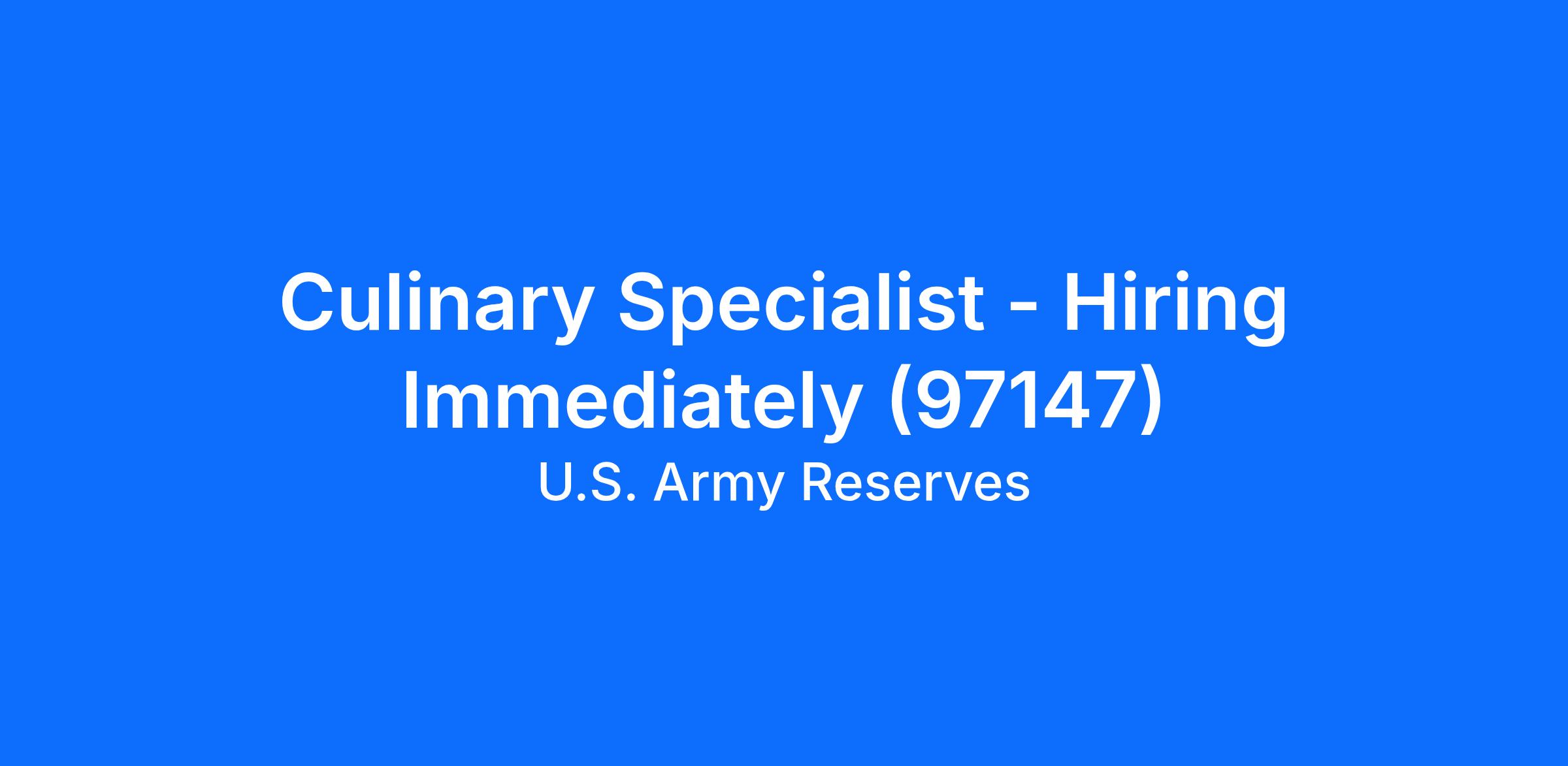 Culinary Specialist - Hiring Immediately (97147)