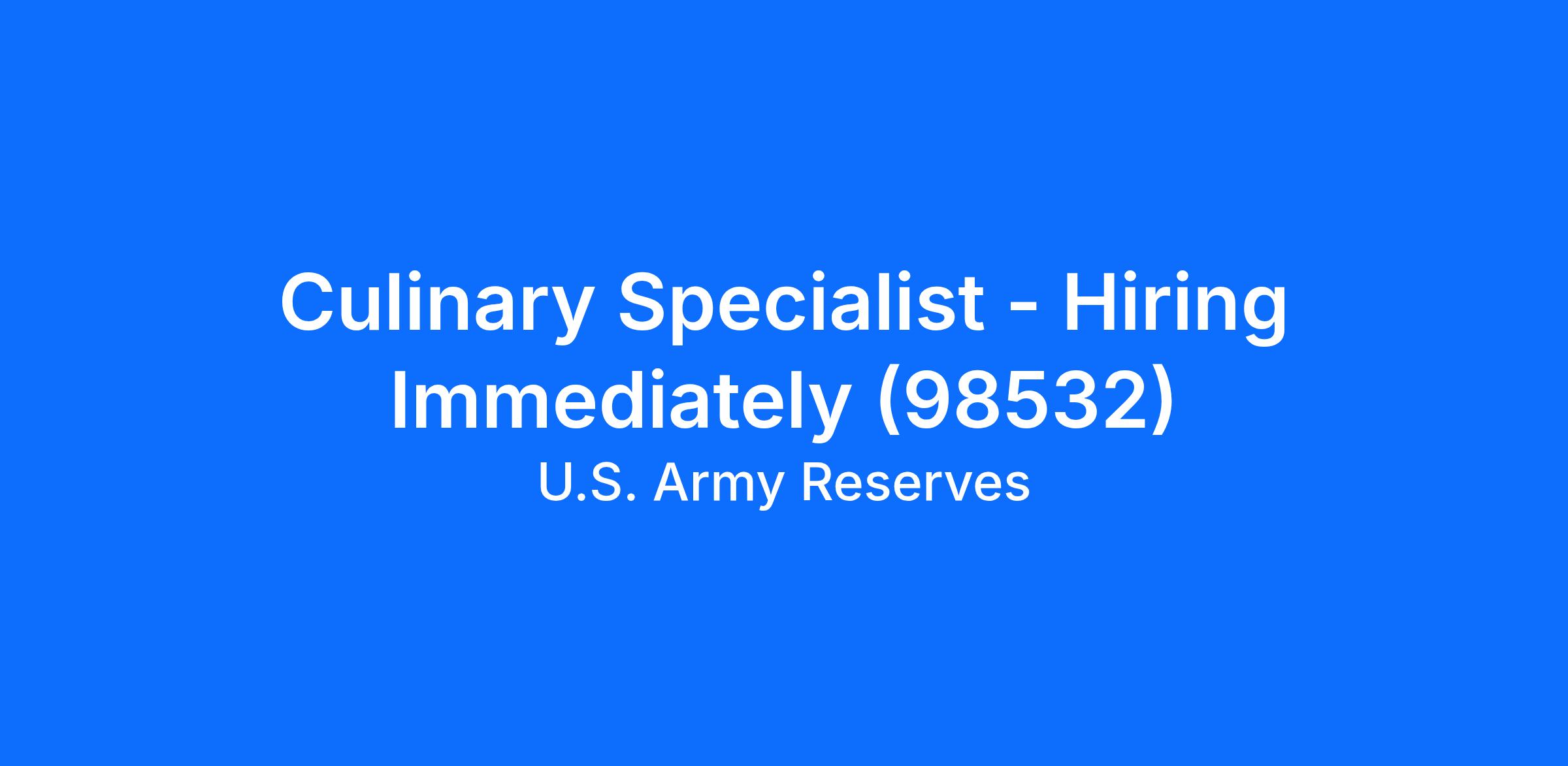 Culinary Specialist - Hiring Immediately (98532)