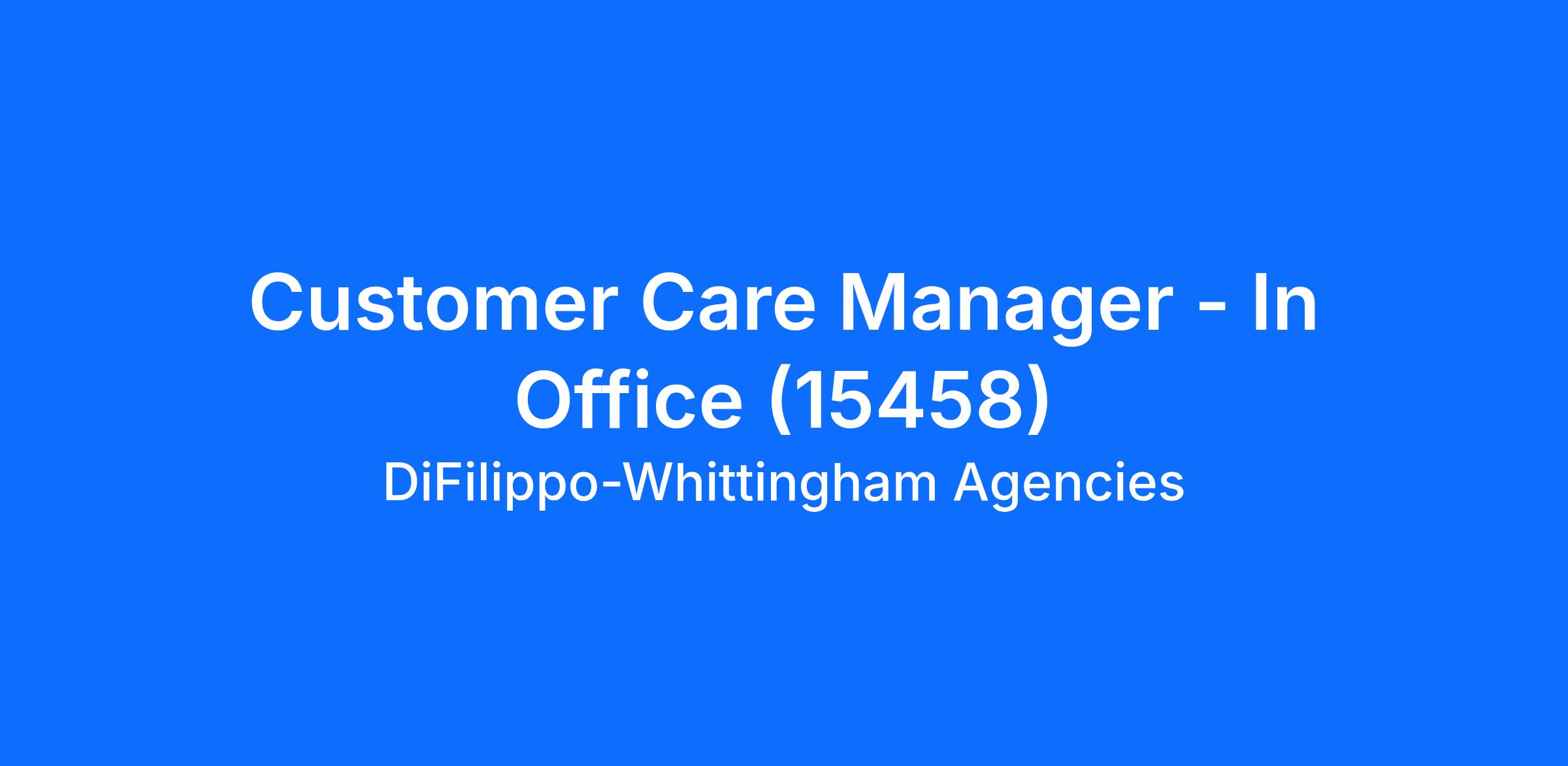 Customer Care Manager - In Office (15458)