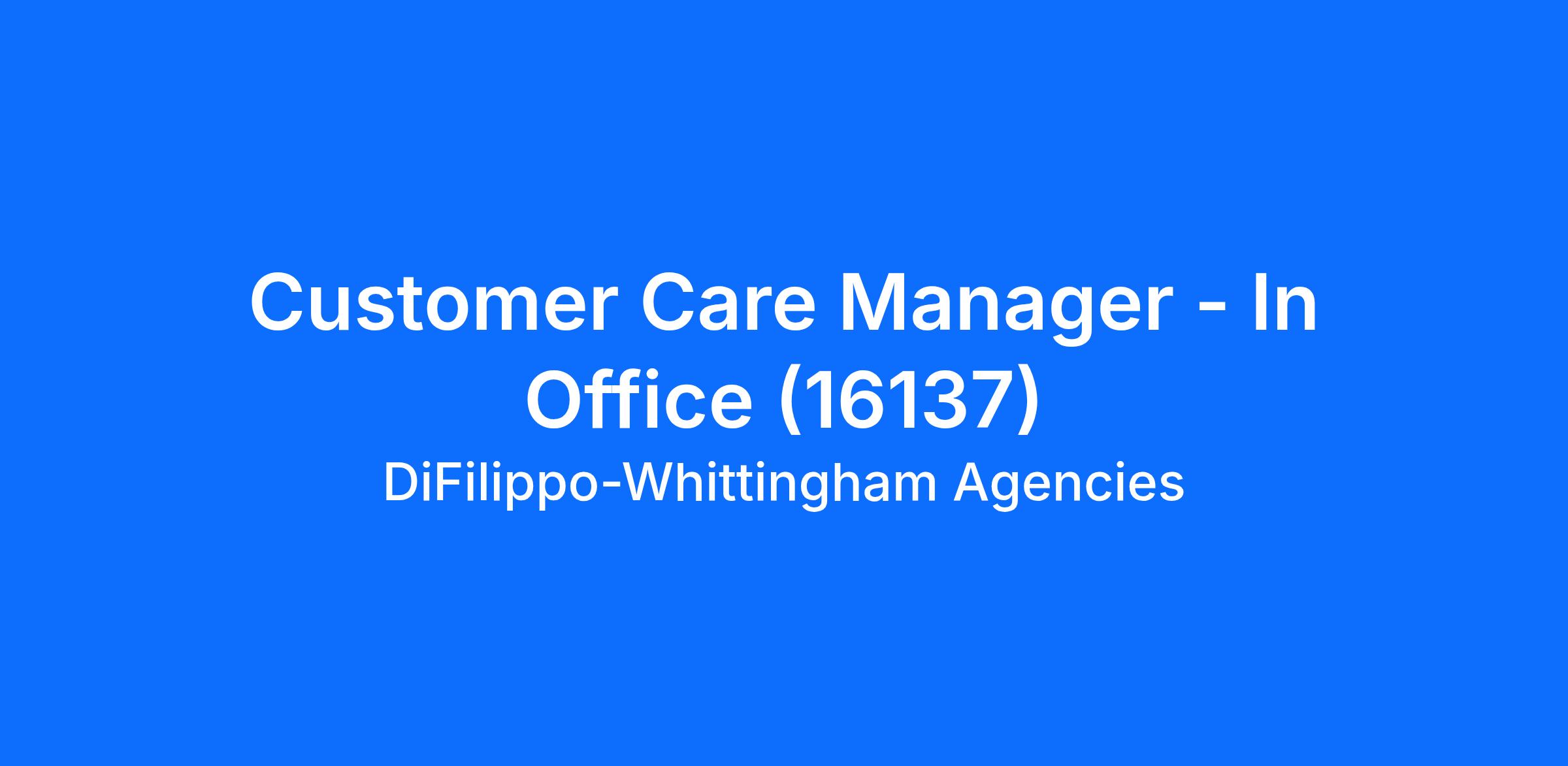 Customer Care Manager - In Office (16137)