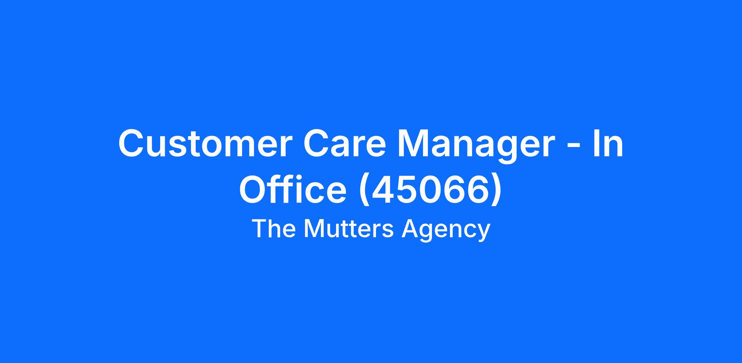 Customer Care Manager - In Office (45066)