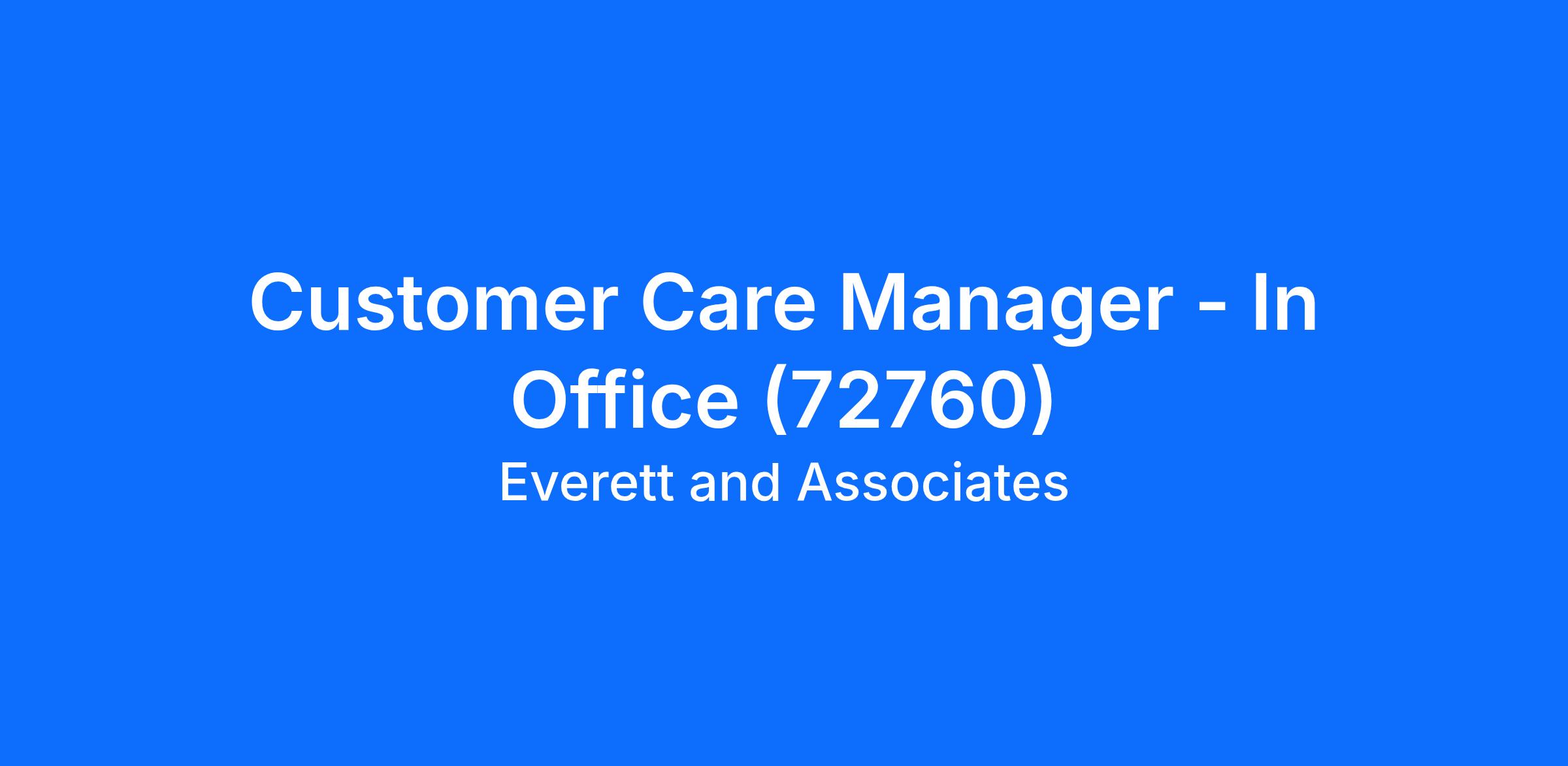 Customer Care Manager - In Office (72760)