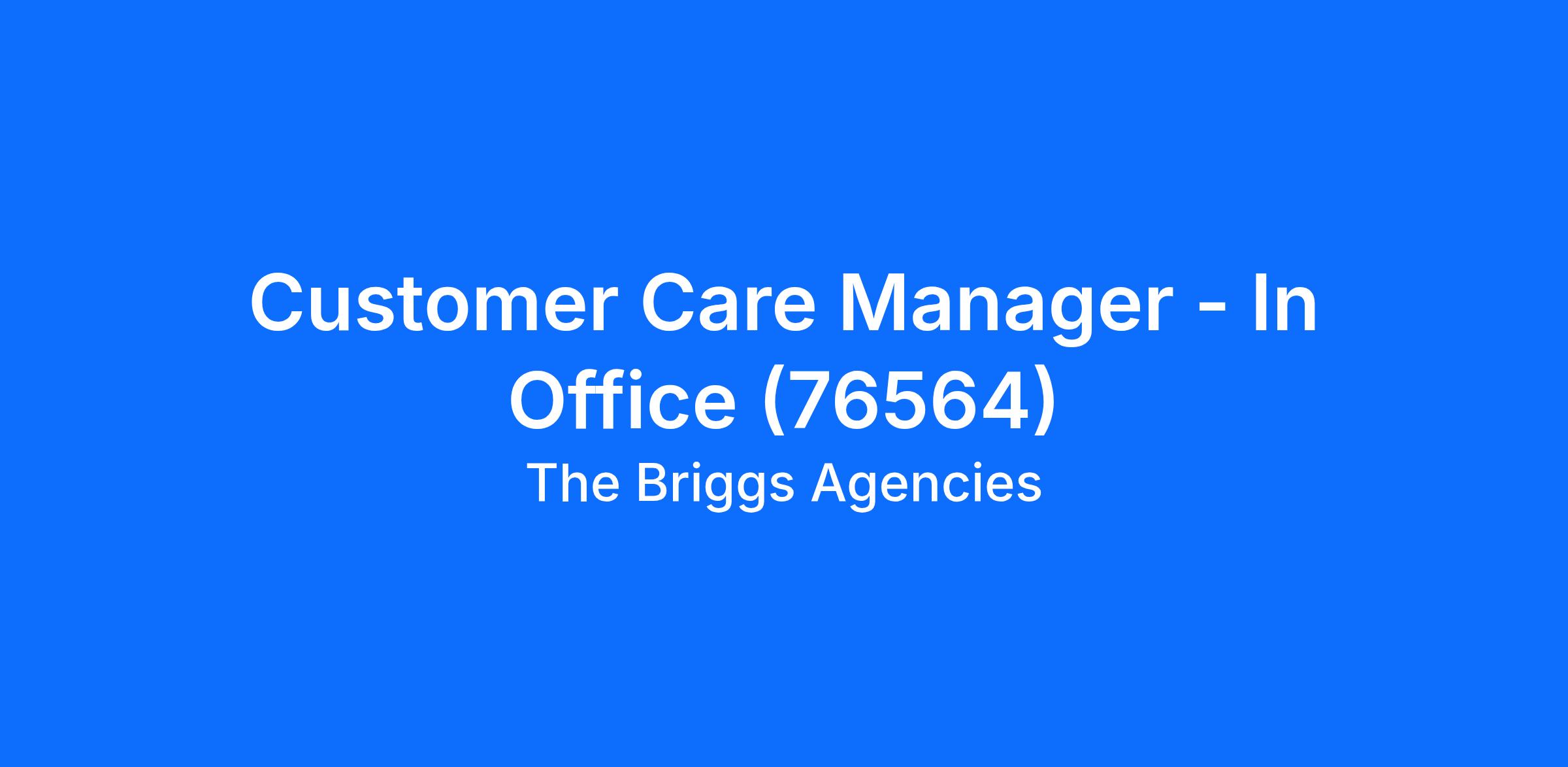 Customer Care Manager - In Office (76564)