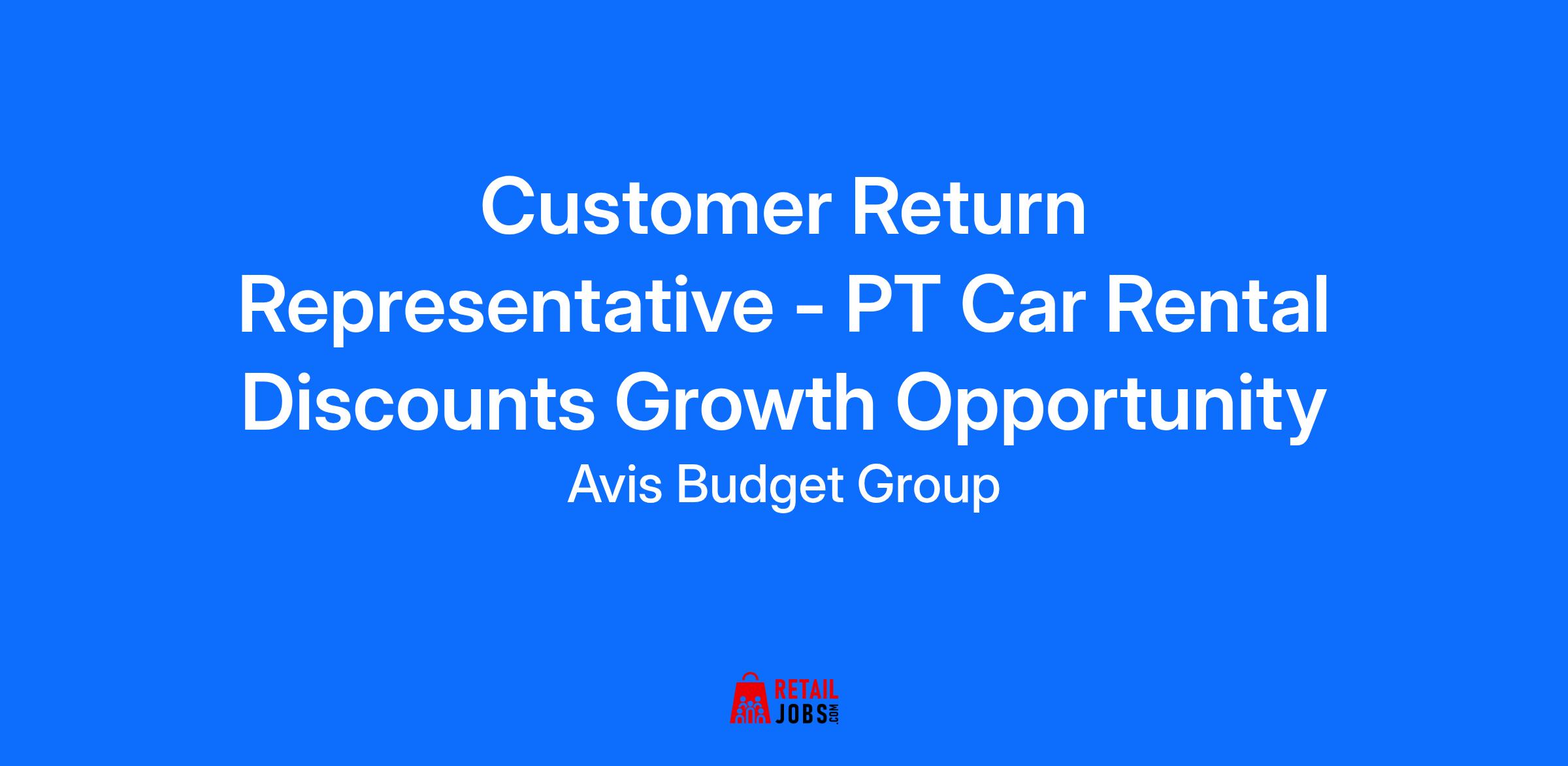 Customer Return Representative Pay Rate:$17.50/hour Immediately hiring! We are now seeking driven and energetic people, like you, to join our growing Avis Budget Group enterprise. You'll be an appreciated and valued addition to our team, putting a smile on our customers' faces! What You'll Do: In this outdoor role, you will help customers return their rental cars. This includes meeting and greeting customers, securing keys, recording mileage, gas levels, and damage to our cars and checking our cars into our computer system while providing excellent customer service. Perks You'll Get: Bi-weekly hourly wage (New York and Puerto Rico: weekly wage) On the job training to learn our business and enhance your professional skills Paid time off Medical, dental and other insurance Flexible spending account opportunity to contribute up to $270 as a tax-free benefit for public transportation or parking expenses Retirement benefits (401k) Employee discounts, including discounted car rental and discounted prices on the purchase of Avis/Budget cars Above perks may vary based on full-time/part-time status and location What We're Looking For: High School Diploma (or equivalent) Valid Driver's License Basic computer skills (typing, data entry) Effective verbal communication skills Willingness to work outdoors Flexibility to work all shifts Must be able to stand, walk or move throughout rental lot, enter/exit vehicles for prolonged periods and drive a variety of vehicles Must be 18 years of age and legally authorized to work in the United States This position requires regular, on-site presence and cannot be performed remotely 6 months retail customer service experience is a bonus! Who We Are: Here at Avis Budget Group, you will be joining a team of 25,000 driven people, performing with purpose. Together, we're moving the future of transportation forward with our innovative, customer-focused solutions. Our culture is performance driven, where we encourage and support each other to be at our best through leadership, training, tools, and rewards. We are proud to make a positive difference to the lives of our colleagues, customers, and communities where we operate. Avis Budget Group is an Equal Opportunity Employer - Qualified applicants will receive consideration for employment without regard to their race, color, religion, sex, sexual orientation, gender identity, national origin, disability, status as a protected veteran or any other category protected by applicable law. This advertisement does not constitute a promise or guarantee of employment. This advertisement describes the general nature and level of this position only. Essential functions and responsibilities may change as business needs require. The compensation and benefits information is accurate as of the date of this posting. The Company reserves the right to modify this information at any time, with or without notice, subject to applicable law. This position may be with any affiliate of Avis Budget Group.