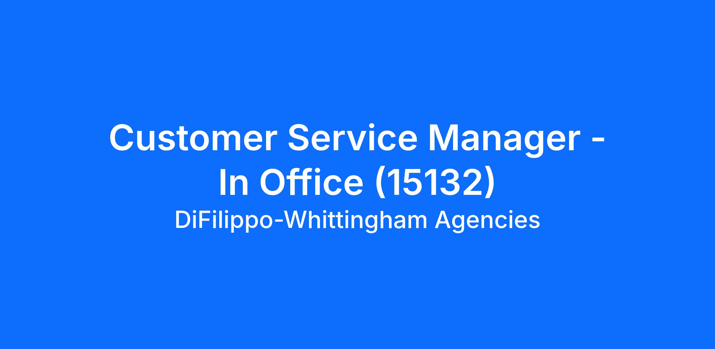 Customer Service Manager - In Office (15132)