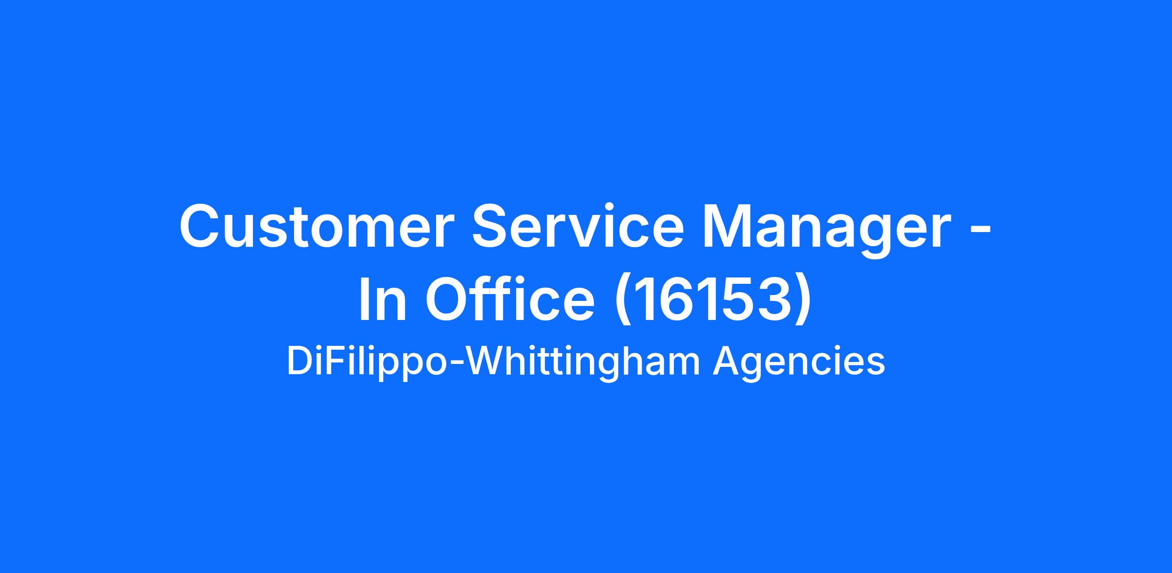 Customer Service Manager - In Office (16153)