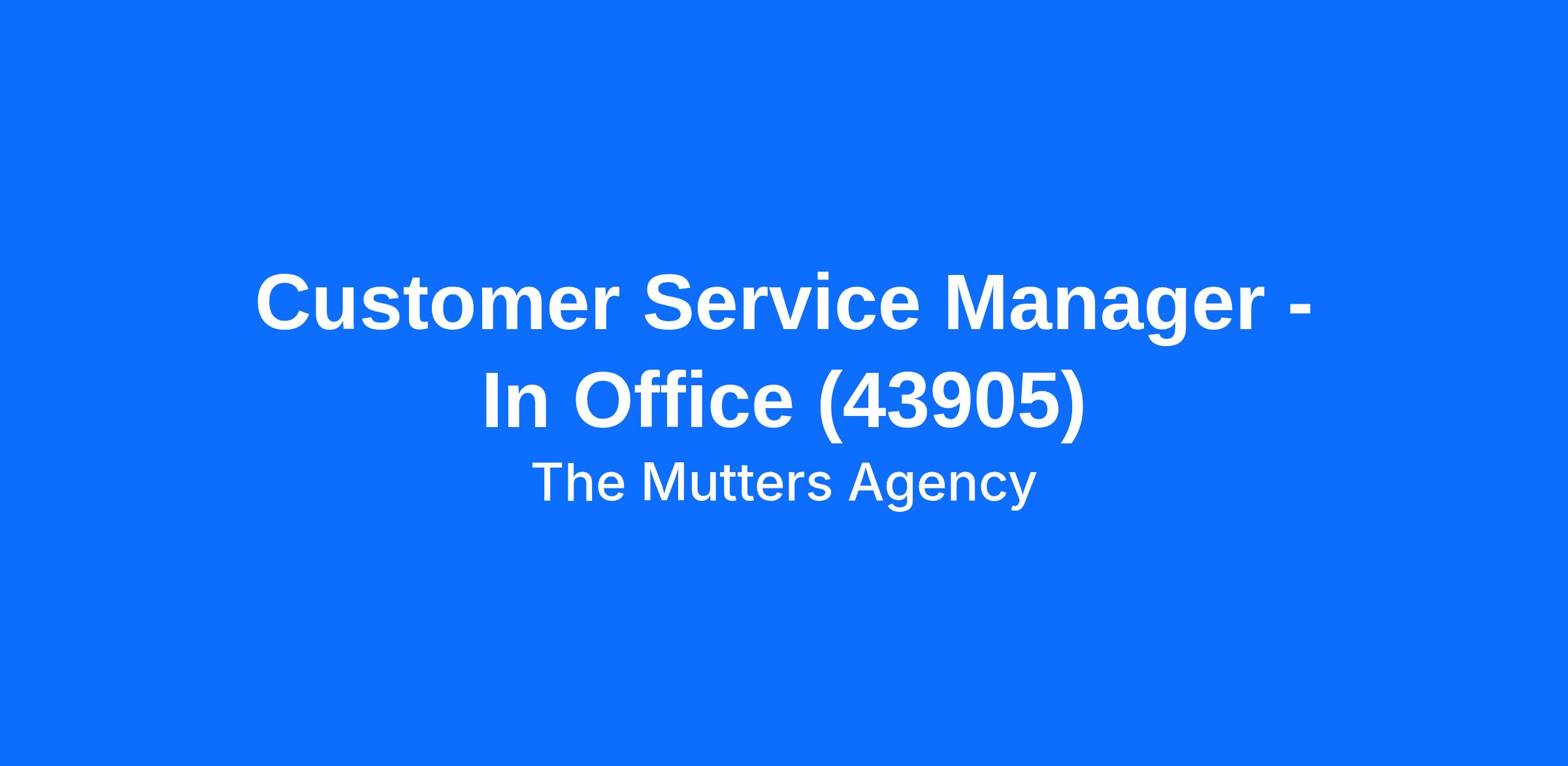 Customer Service Manager - In Office (43905)