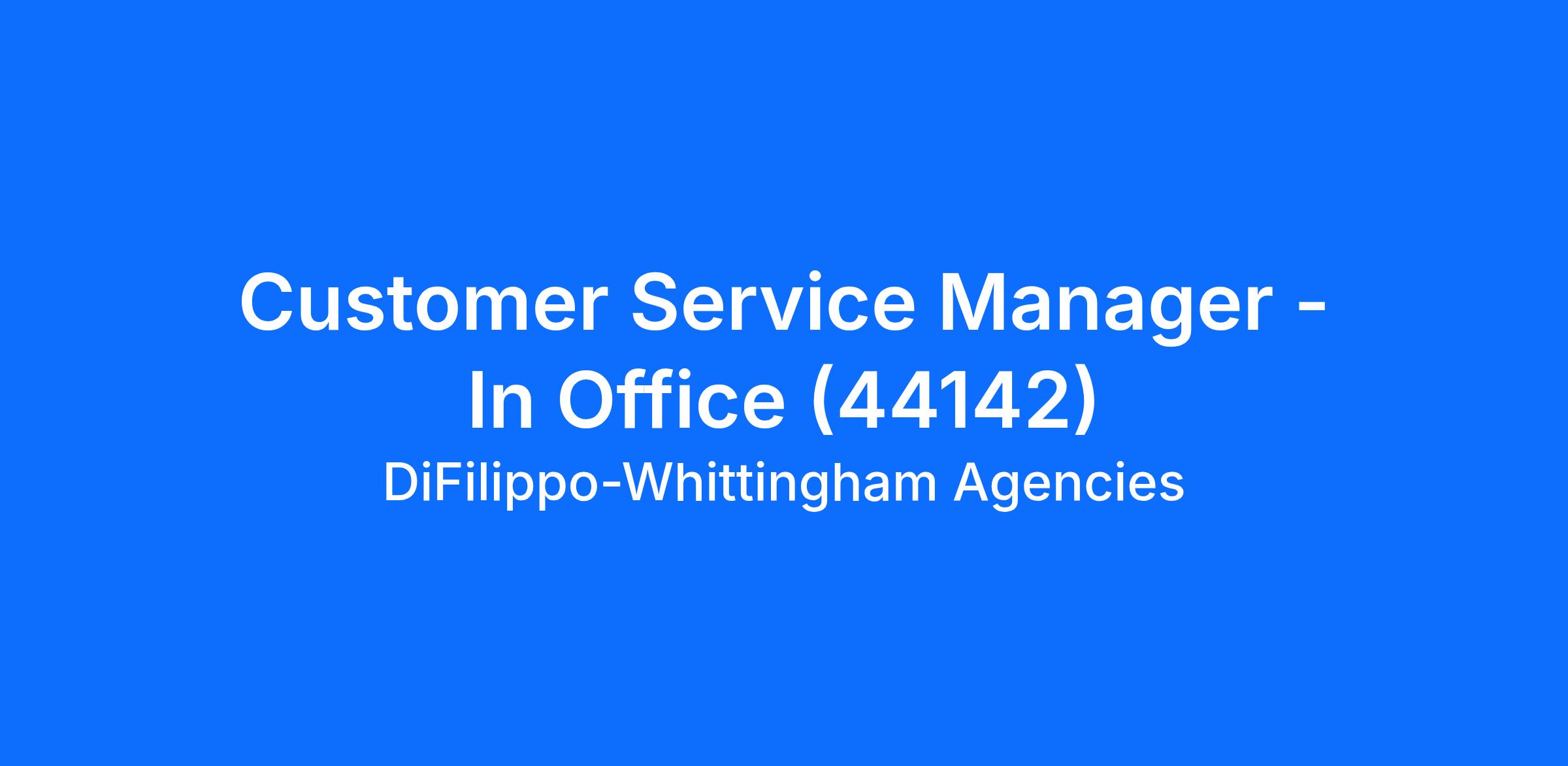 Customer Service Manager - In Office (44142)