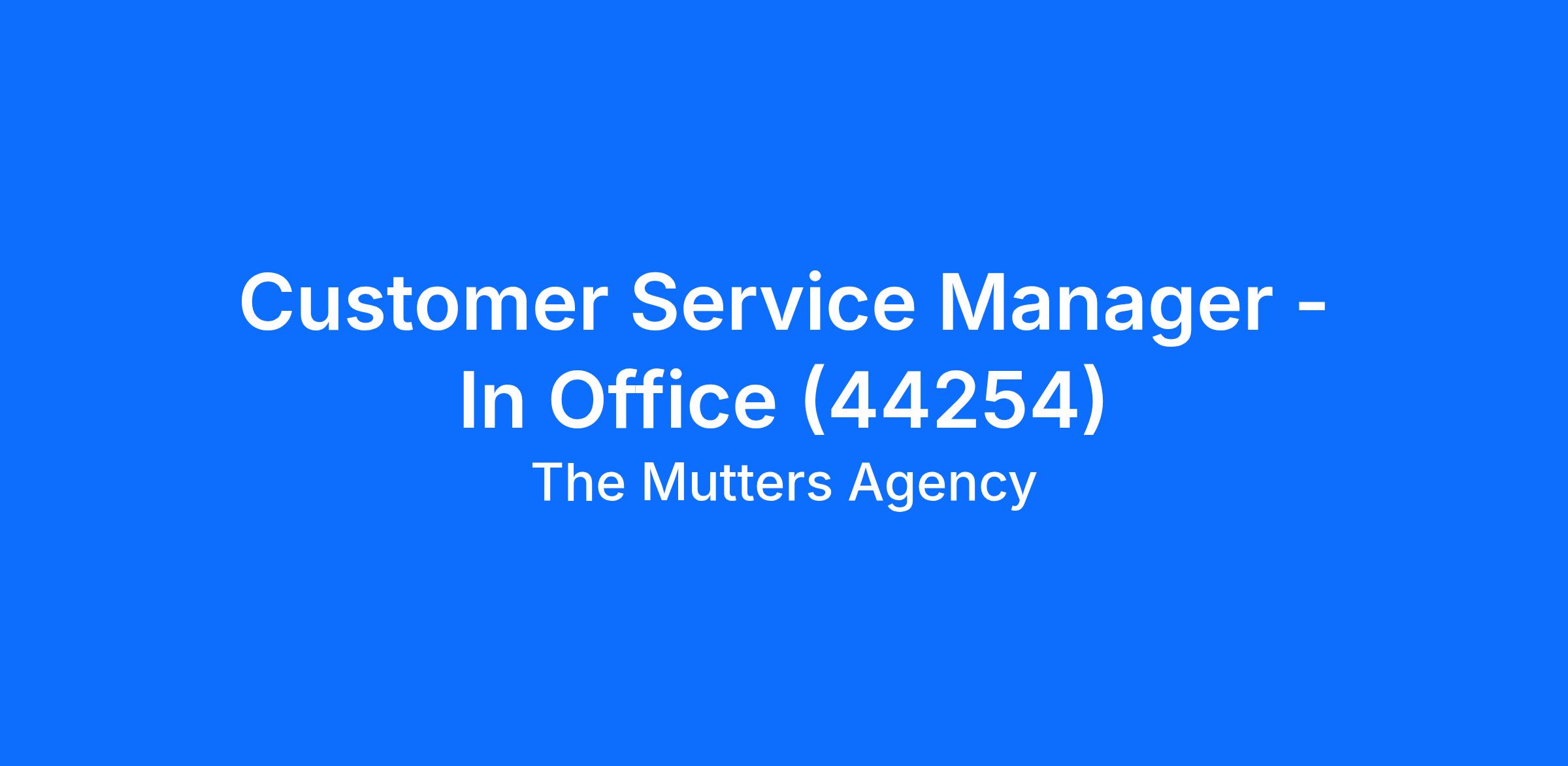 Customer Service Manager - In Office (44254)
