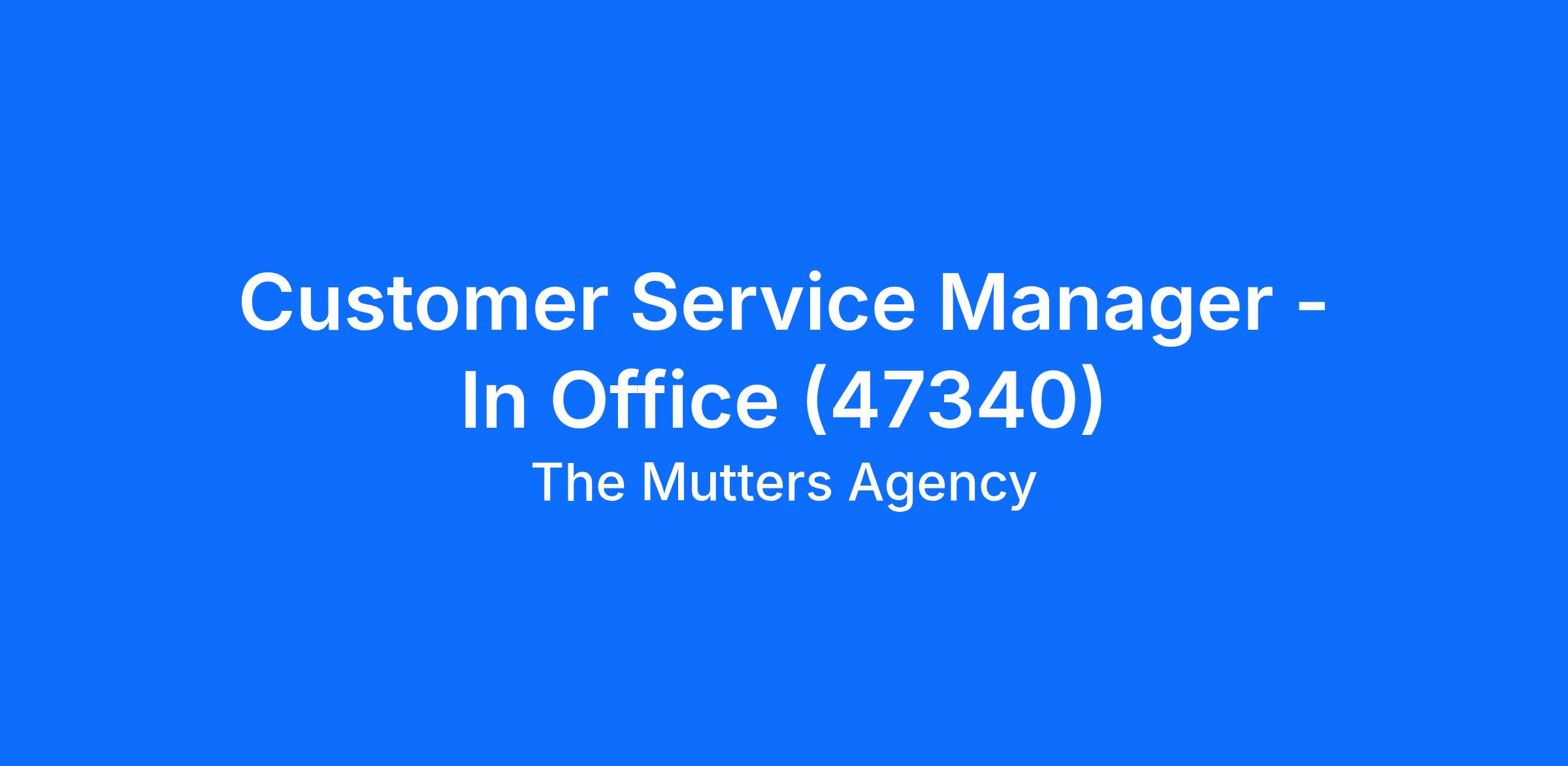 Customer Service Manager - In Office (47340)