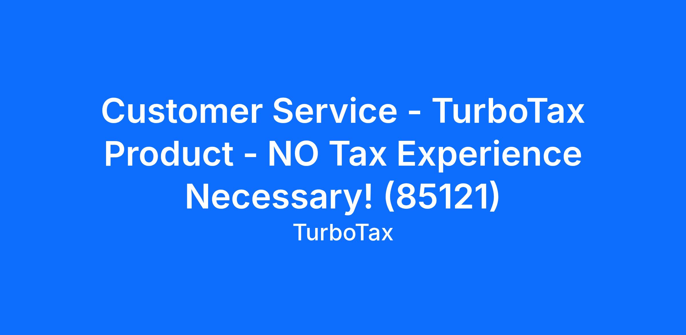 Customer Service - TurboTax Product - NO Tax Experience Necessary! (85121)