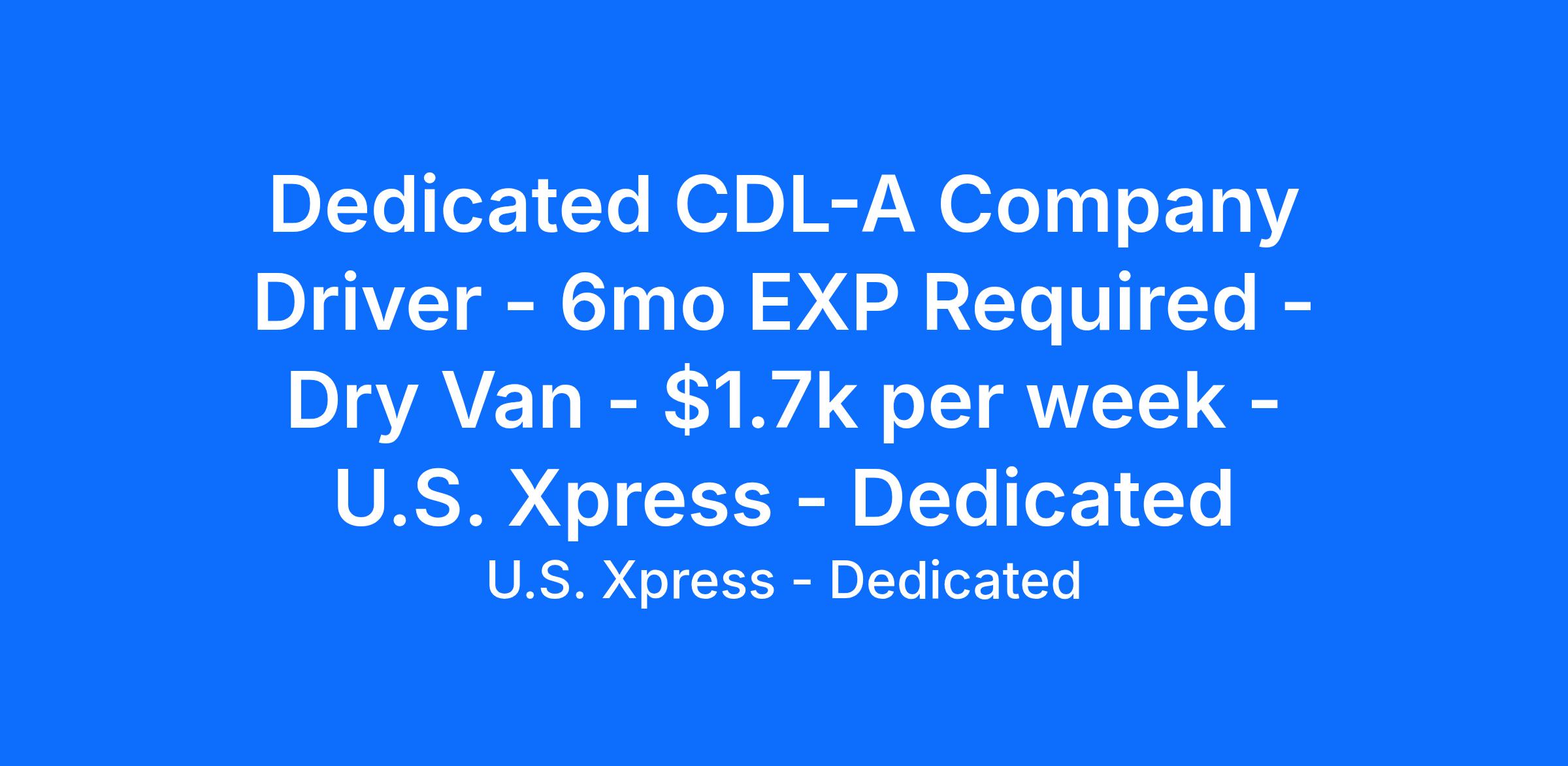 Dedicated CDL-A Company Driver - 6mo EXP Required - Dry Van - $1.7k per week - U.S. Xpress - Dedicated
