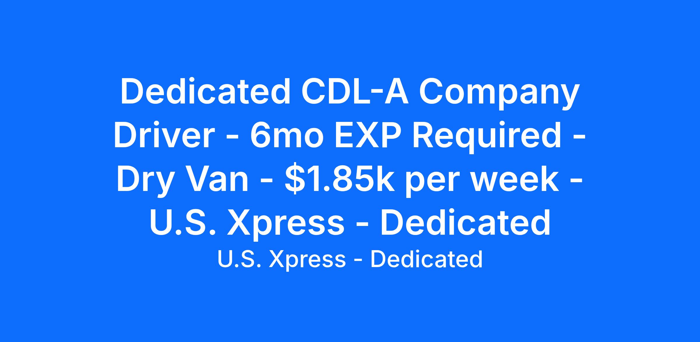 Dedicated CDL-A Company Driver - 6mo EXP Required - Dry Van - $1.85k per week - U.S. Xpress - Dedicated