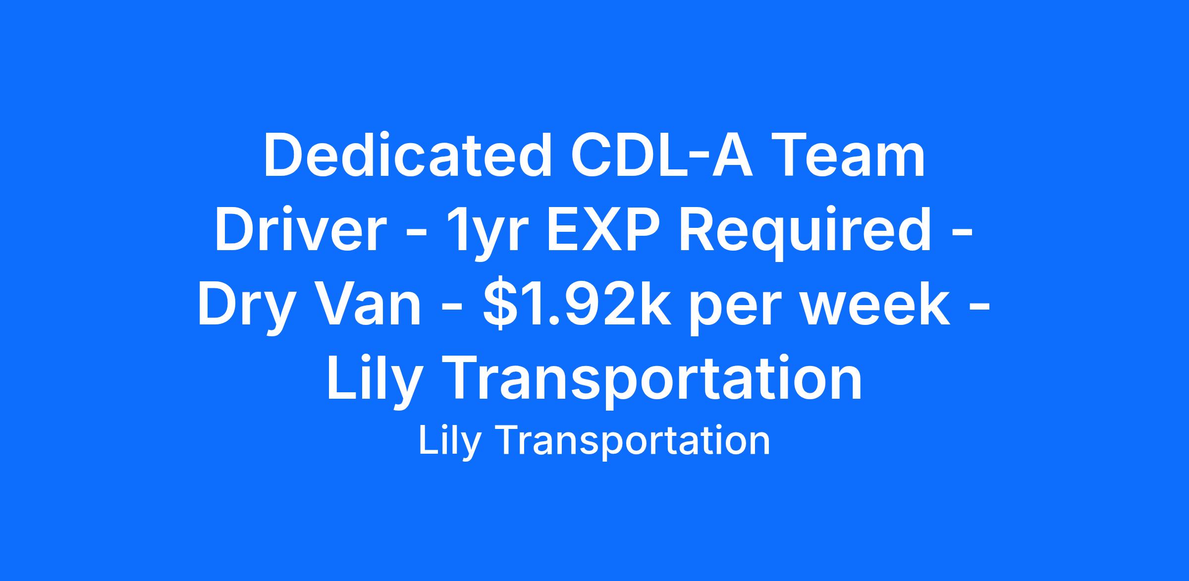 CDL-A Teams: Earn up to $1,920 avg weekly with Lily!.