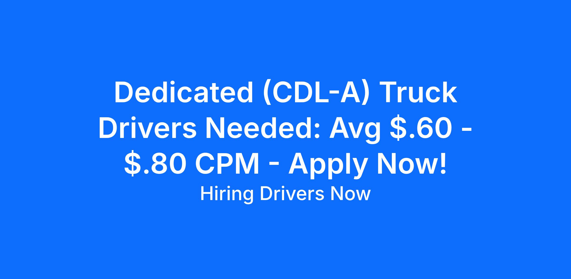 Dedicated (CDL-A) Truck Drivers Needed: Avg $.60 - $.80 CPM - Apply Now!