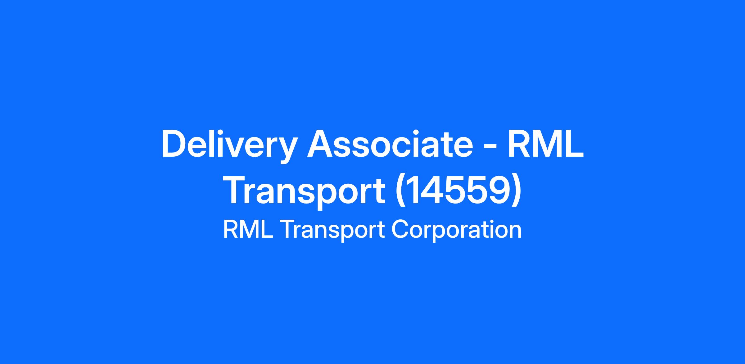 Delivery Associate - RML Transport (14559)