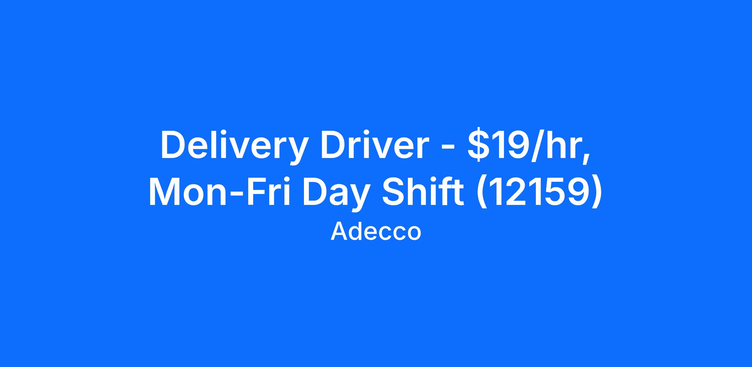 Delivery Driver - $19/hr, Mon-Fri Day Shift (12159)