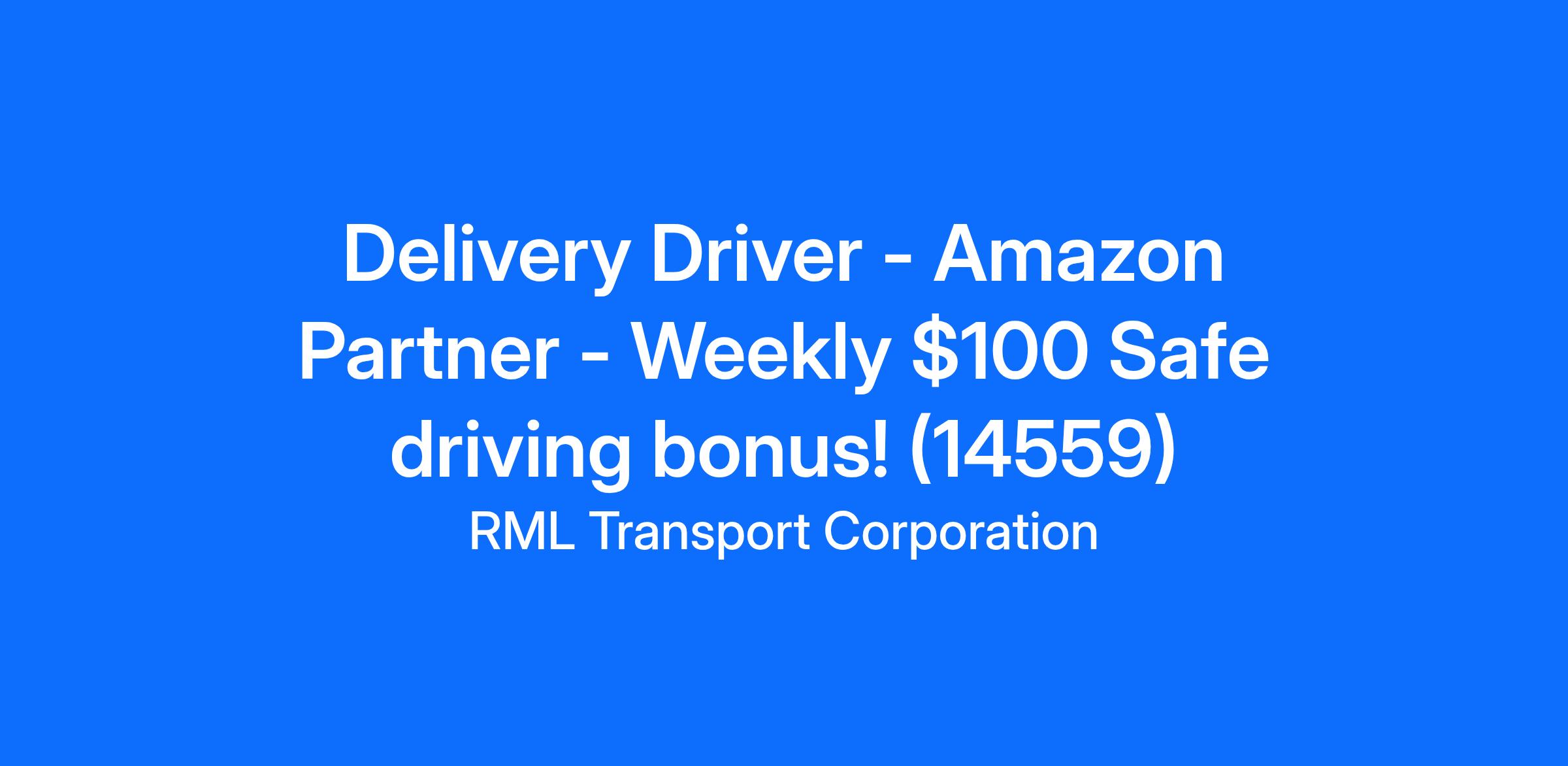 Delivery Driver - Amazon Partner - Weekly $100 Safe driving bonus! (14559)