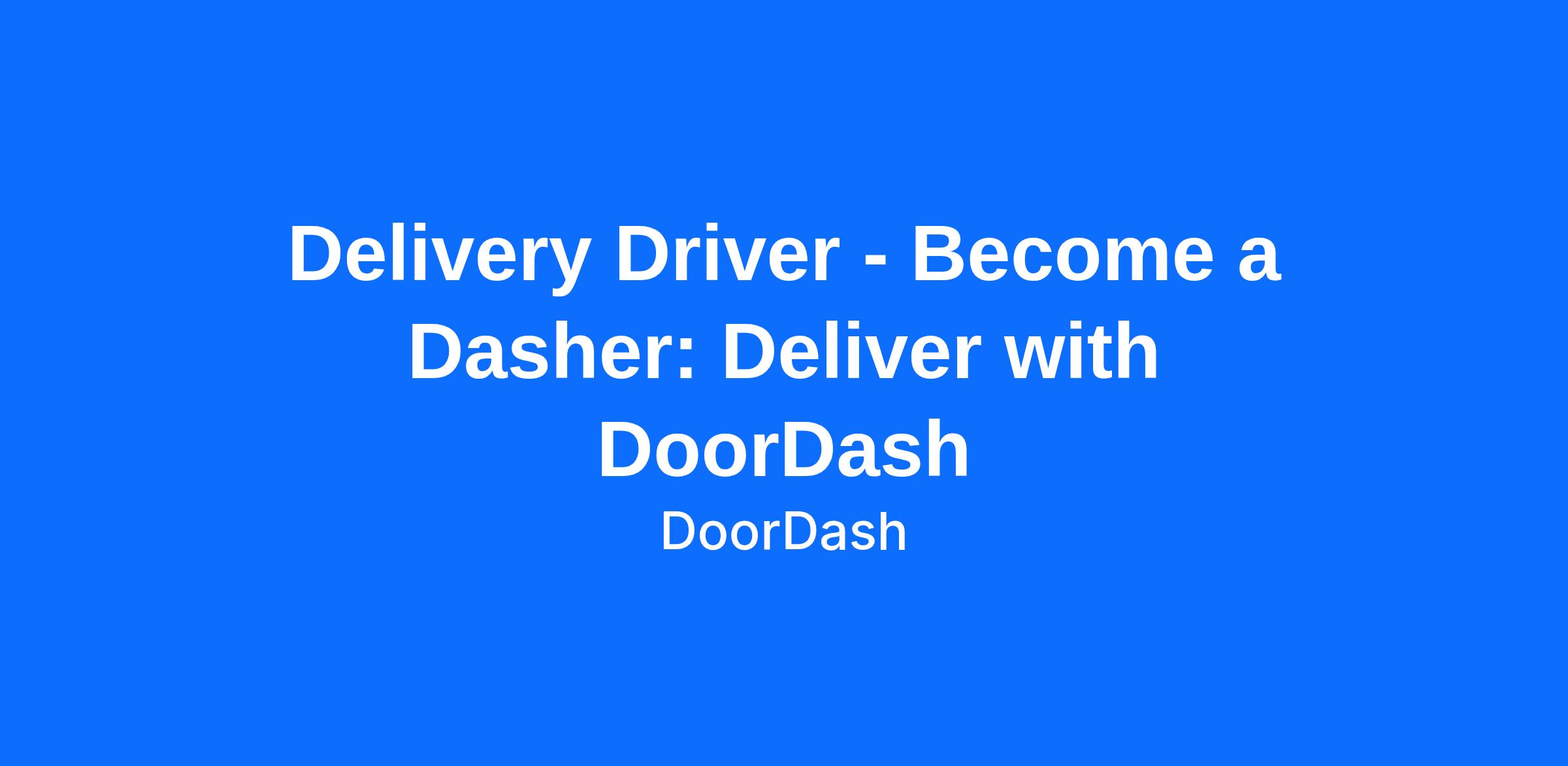 Delivery Driver - Become a Dasher: Deliver with DoorDash