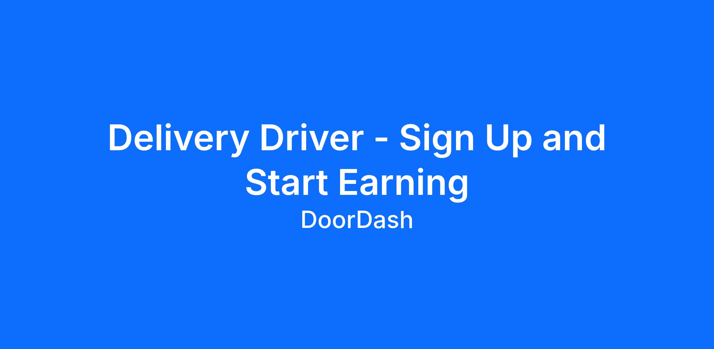 *Why Deliver with DoorDash?* DoorDash is the 1 category leader in food delivery, food pickup, and convenience store delivery in the US, trusted by millions of customers every day. As a Dasher, you'll stay busy with a variety of earnings opportunities and can work when it works for you. Whetheryou're looking for a side hustle or a full-time gig, delivering with DoorDash gives you the opportunity to earn extra cash on your terms. * *Multiple ways to earn:*Whether you're delivering meals, groceries, or retail orders, DoorDash offers diverse earning opportunities so you can maximize your time. * *Total flexibility:*Dash when it works for you. Set your own hours and work as much—or as little—as you want. * *Know how much you'll make:*Clear and concise pay model lets you know the minimum amount you will make before accepting any offer. * *Instant cash flow:*Get paid the same day you dash with DoorDash Crimson*. No deposit fees, no waiting. * *Quick and easy start:*Sign up in minutes and get on the road fast. * *Simple Process:*Just pick up, drop off, and cash out. Payday is in your back pocket. *Basic Requirements* * 18 years old (21 to deliver alcohol) * Any car, scooter, or bicycle (in select cities) * Driver's license number * Social security number (only in the US) * Consistent access to a smartphone *How to Sign Up* * Click “Sign UpApply Now” and complete the sign up process * Download the DoorDash Dasher app and go *Subject to eligibility requirements and successful ID verification. The DoorDash Crimson Deposit Account is established by Starion Bank, Member FDIC. The DoorDash Crimson Visa® Debit Card is issued by Starion Bank. Subject to eligibility Must be 19 in Arizona, California, Colorado, Delaware, Florida, Georgia, Idaho, Kentucky, Montana, New Jersey, New Mexico, Texas, Utah, and West Virginia *Additional information* Dashing with DoorDash is a great earnings opportunity for anyone looking for part-time, seasonal, flexible, weekend, after-school, temporary, steady delivery gig. Deliver with DoorDash and earn extra cash while being your own boss. Dash when it works for you. Sign up today.