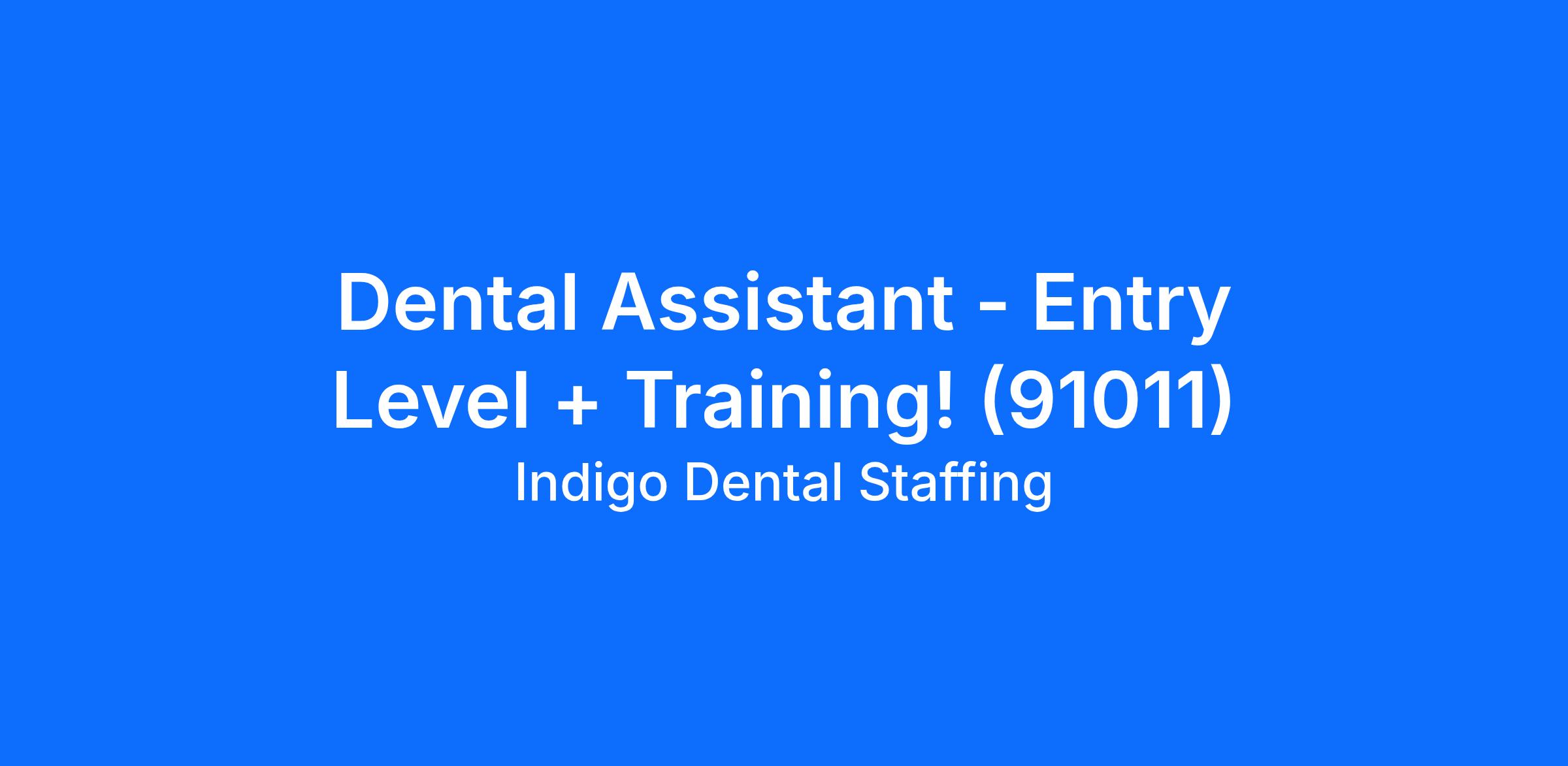 Dental Assistant - Entry Level + Training! (91011)