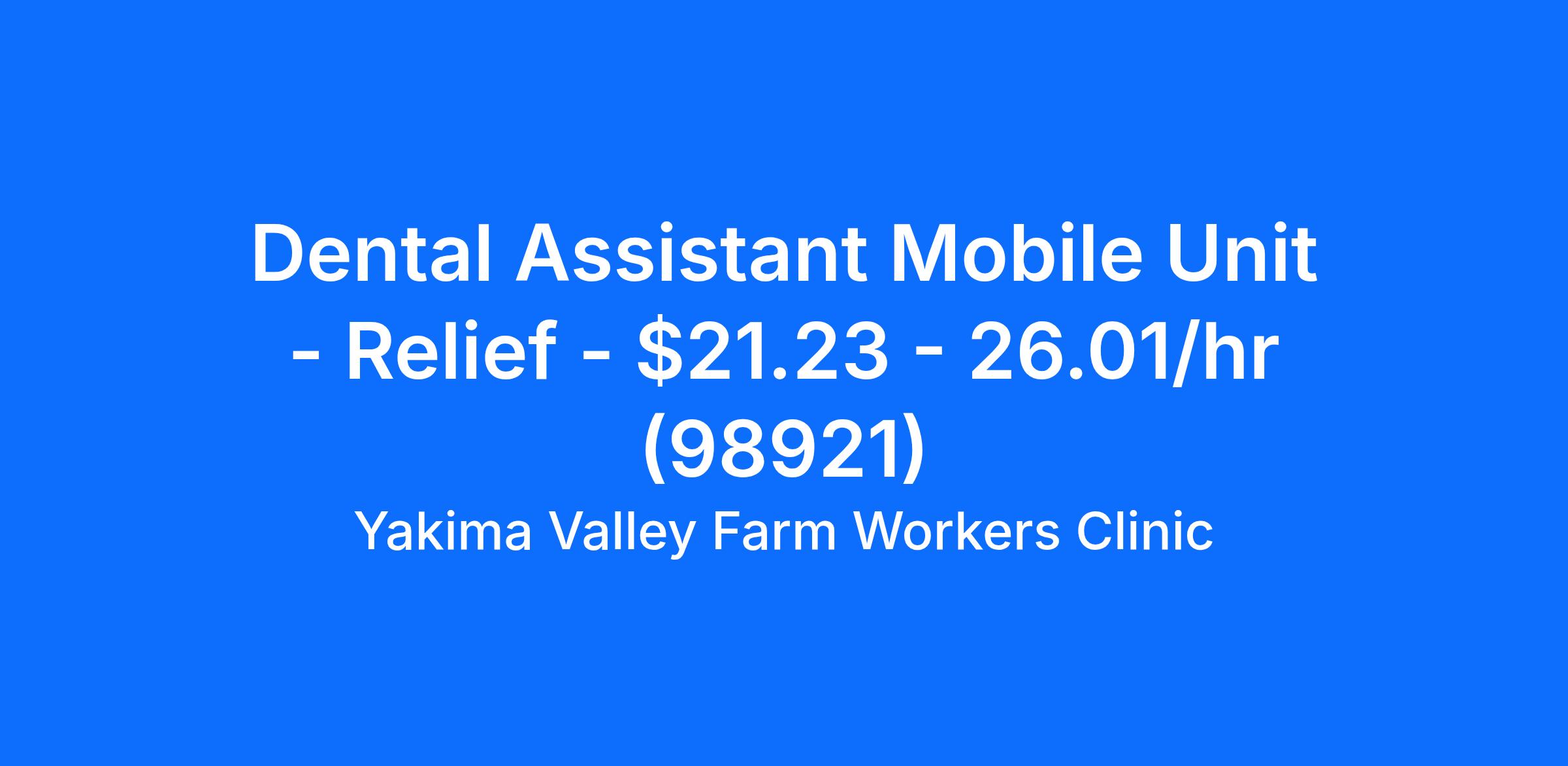 Dental Assistant Mobile Unit - Relief - $21.23 - 26.01/hr (98921)