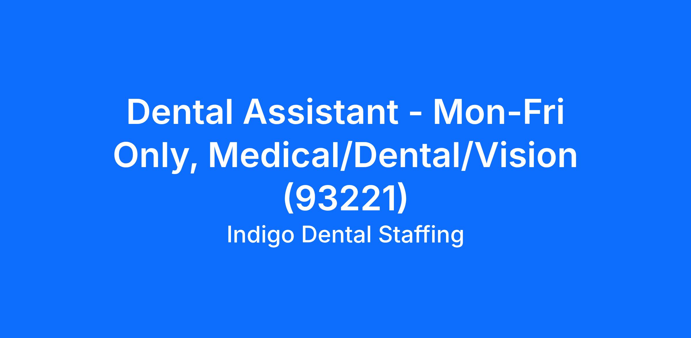 Dental Assistant - Mon-Fri Only, Medical/Dental/Vision (93221)