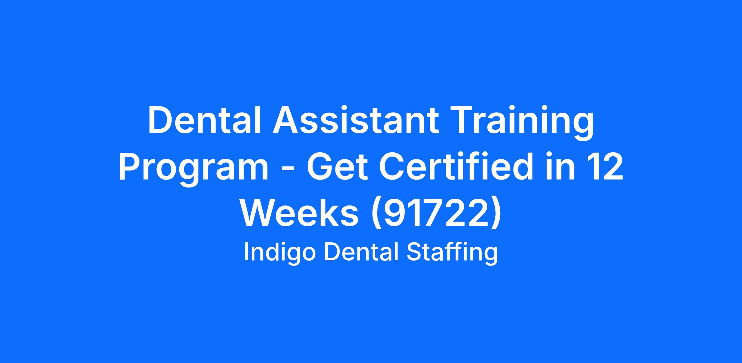 Dental Assistant Training Program - Get Certified in 12 Weeks (91722)